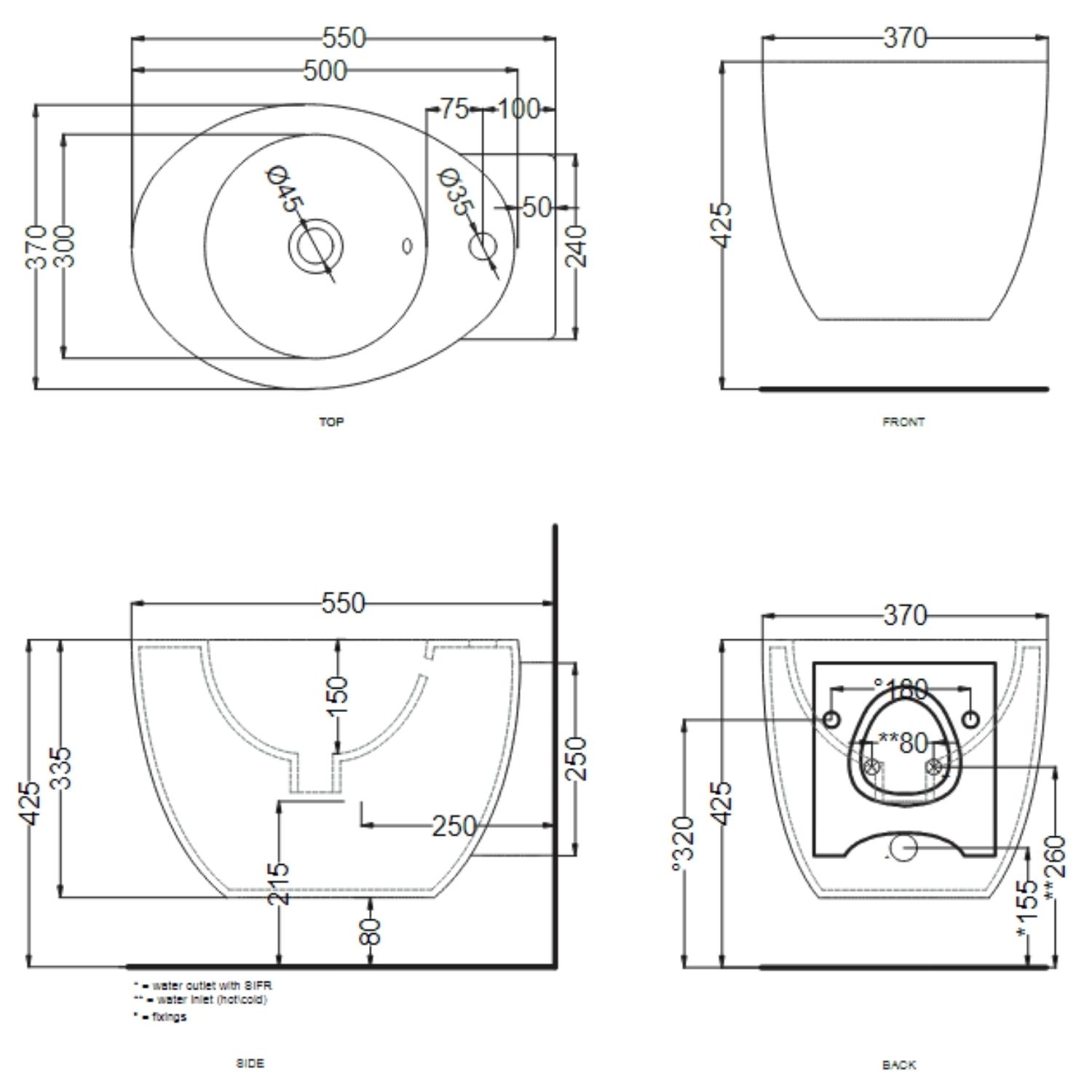 Bidet sospeso 55x37 cm Cielo Ceramica Le Giare LGBS. Bianco lucido in ceramica made in Italy. Kit fissaggi escluso