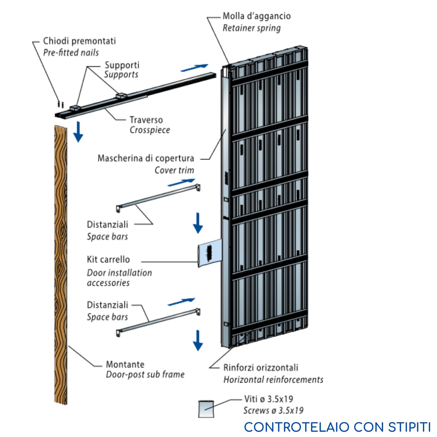 Controtelaio per porte scorrevoli anta unica per cartongesso. Controtelaio con stipiti