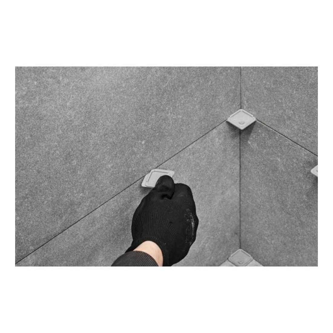 L'applicazione dei distanziatori è prevista sul lato della piastrella ed essendo piatta, può essere usata anche a filo pavimento e a filo muro