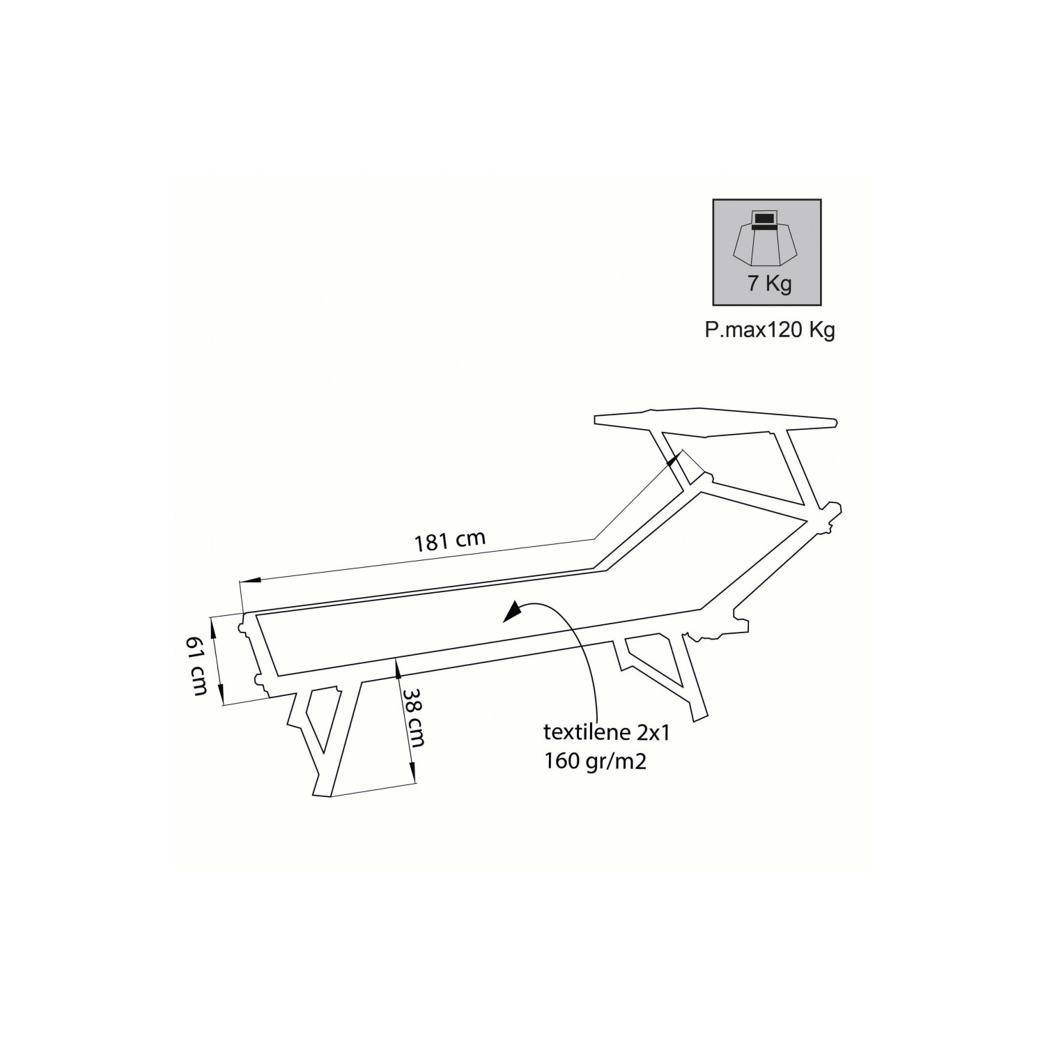 Dimensione: 186x61x38h cm - Colore: Bianco - Materiale: Alluminio - Peso in Kg: 5.7 - Portata in Kg: 120