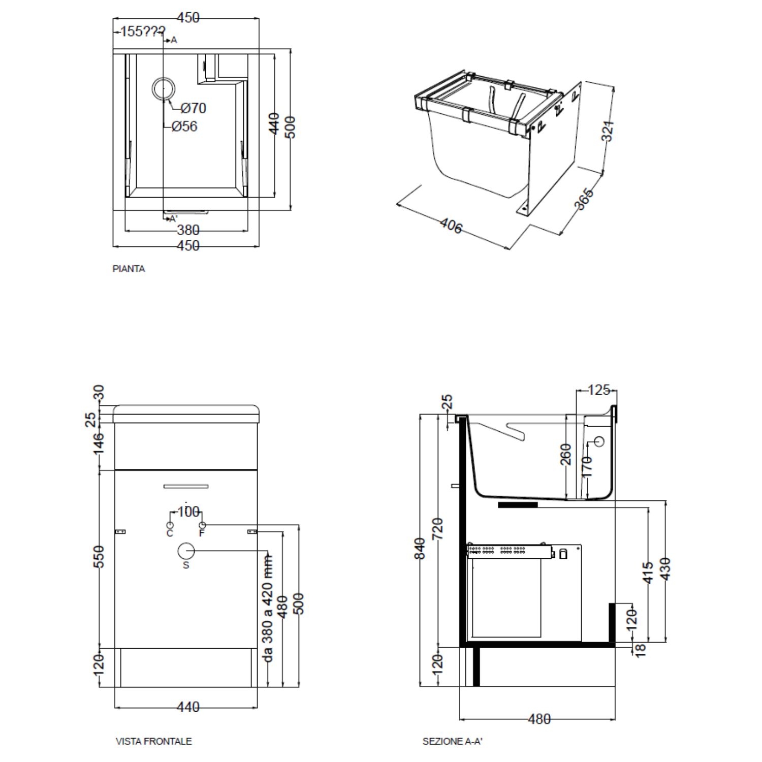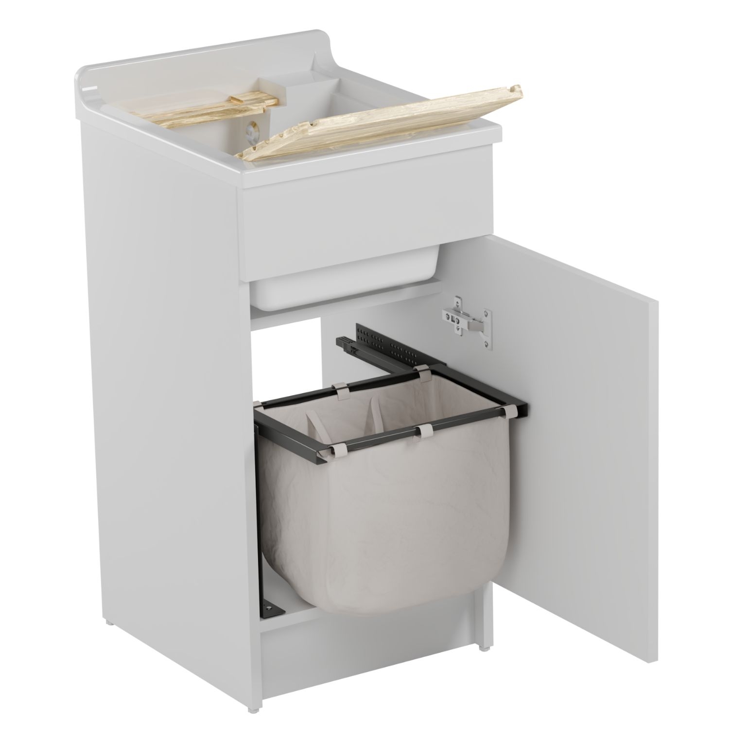 - Completo di: cesto portabiancheria (scorrevole ed estraibile), asse lavapanni in legno massello, sifone e troppopieno