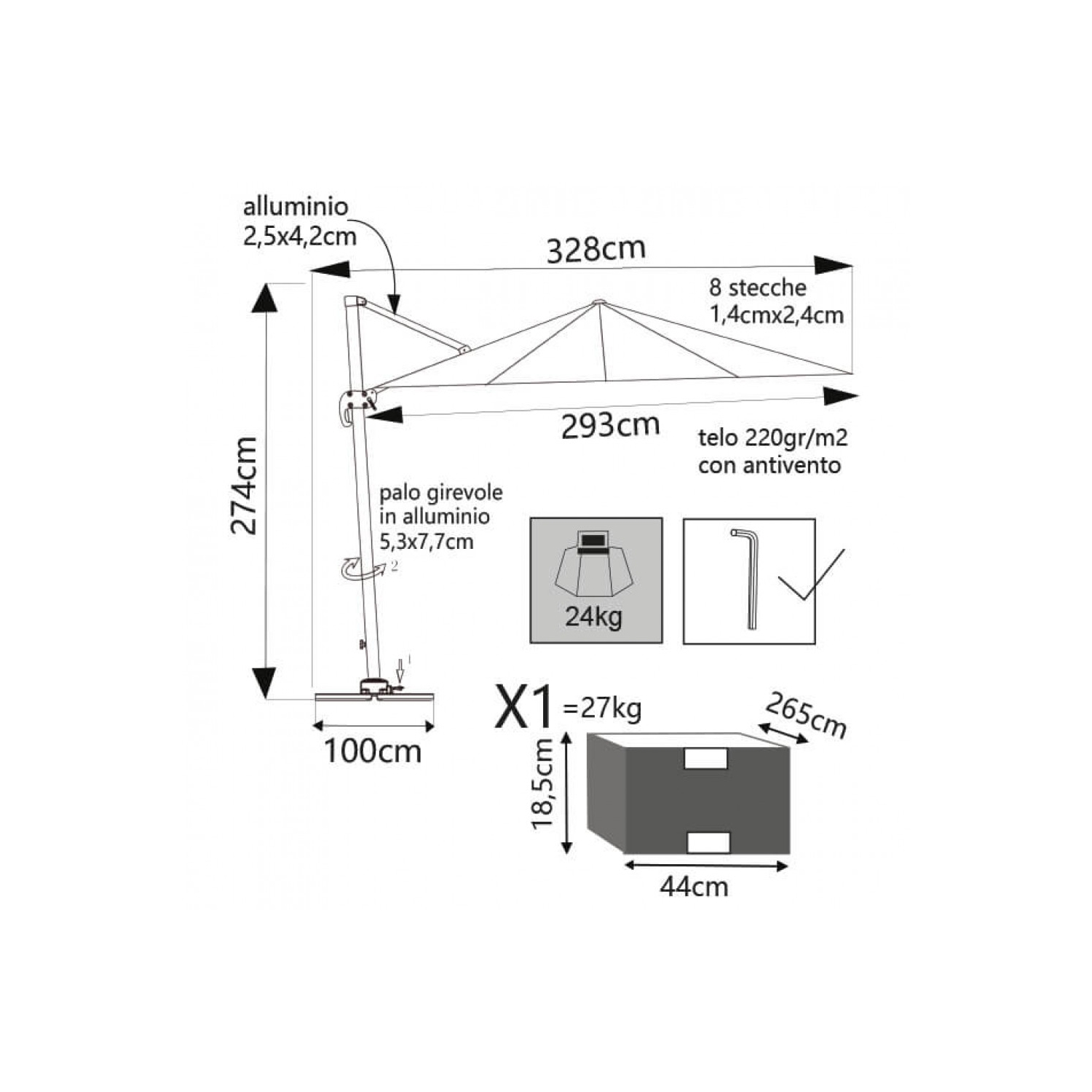 Ombrellone Saturno Tortora P/L 3 X 4 Telo Tortora