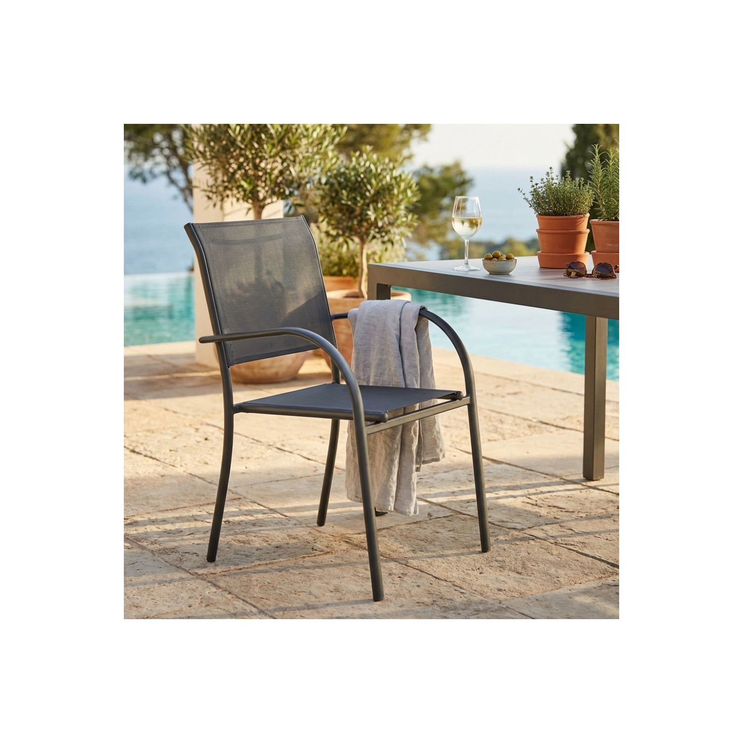 copy of Poltrona da giardino in allumino bianco e tessuto con braccioli - STAMFORD