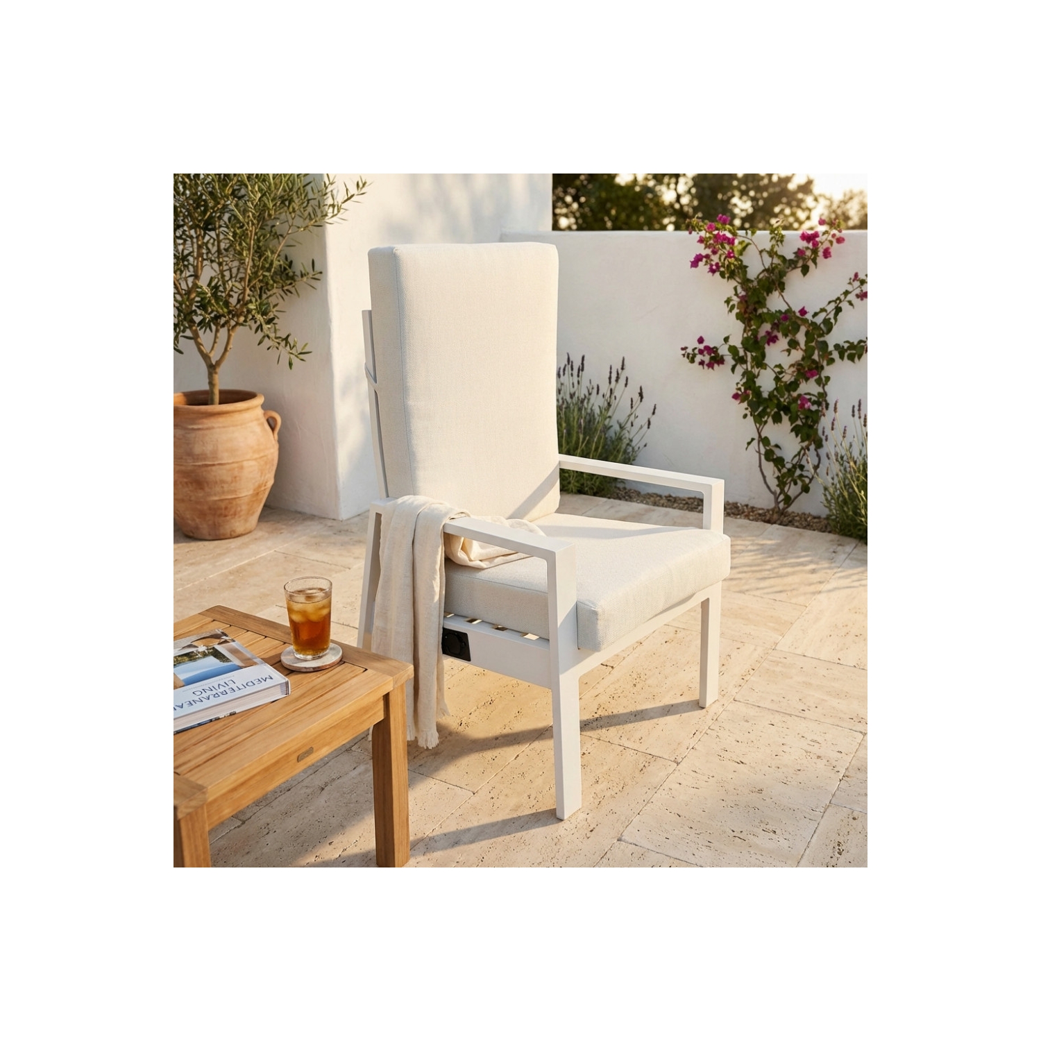 Poltrona da giardino reclinabile con struttura in alluminio verniciato ANTRACITE e con cuscino. Dimensioni: 63.5x71x101h cm. Poggiapiedi venduto separatamente.