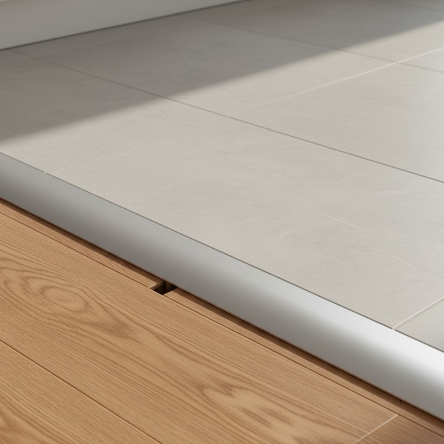 Profilo terminale a sguscio in alluminio anodizzato argento per la posa flottante di pavimenti in legno e laminato. Dimensioni 270cmx40mm