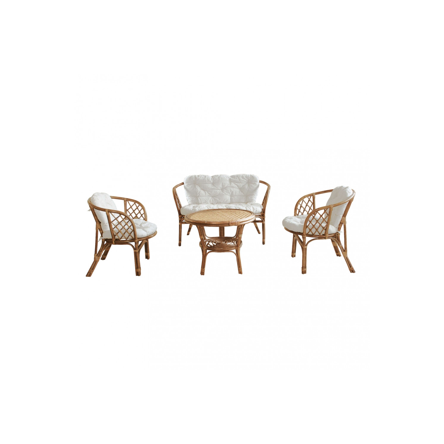 Salotto in fibra natura BIANCO o MIELE o MARRONE cuscini in cotone ecru, nel salotto bianco grigi Dimensioni: D.113x69x70/P.68x69x70/T.Ø56x55