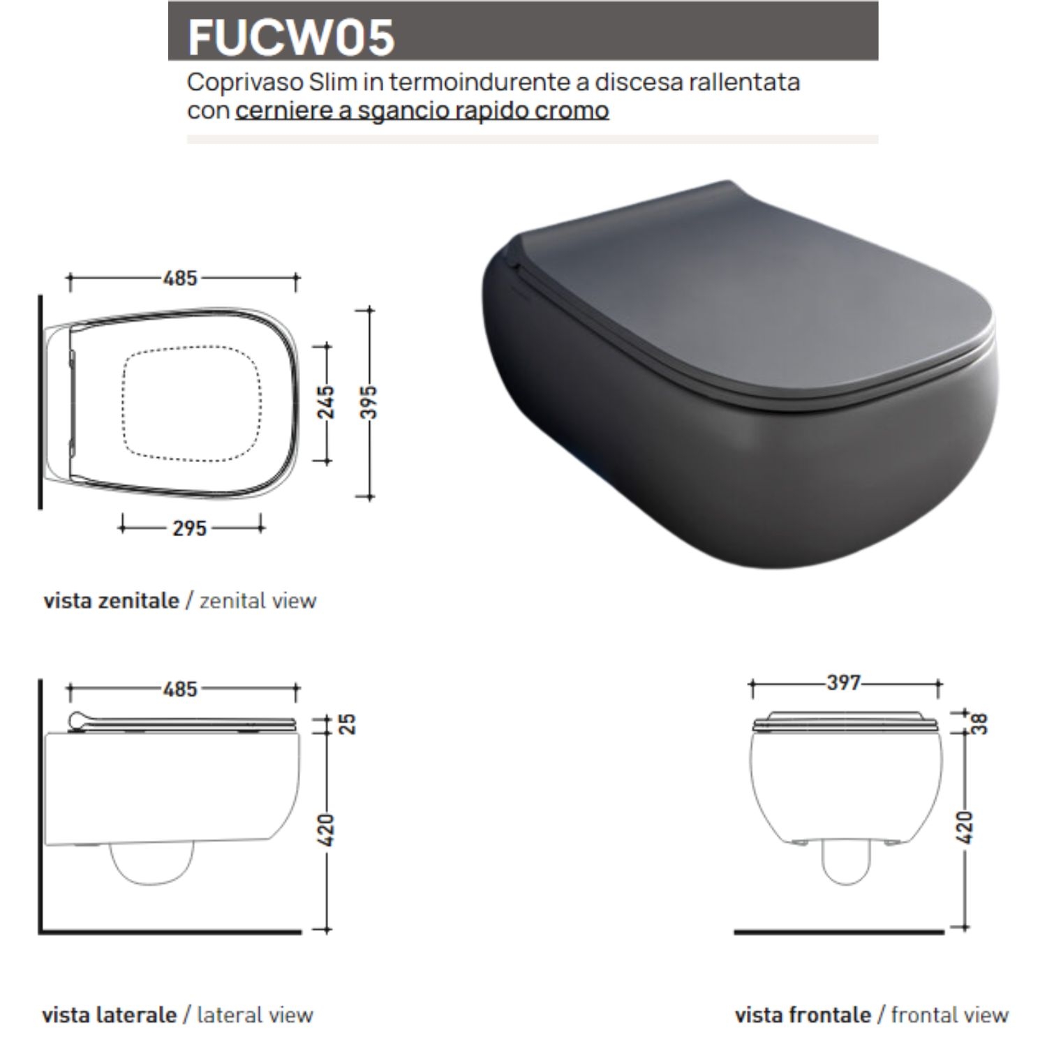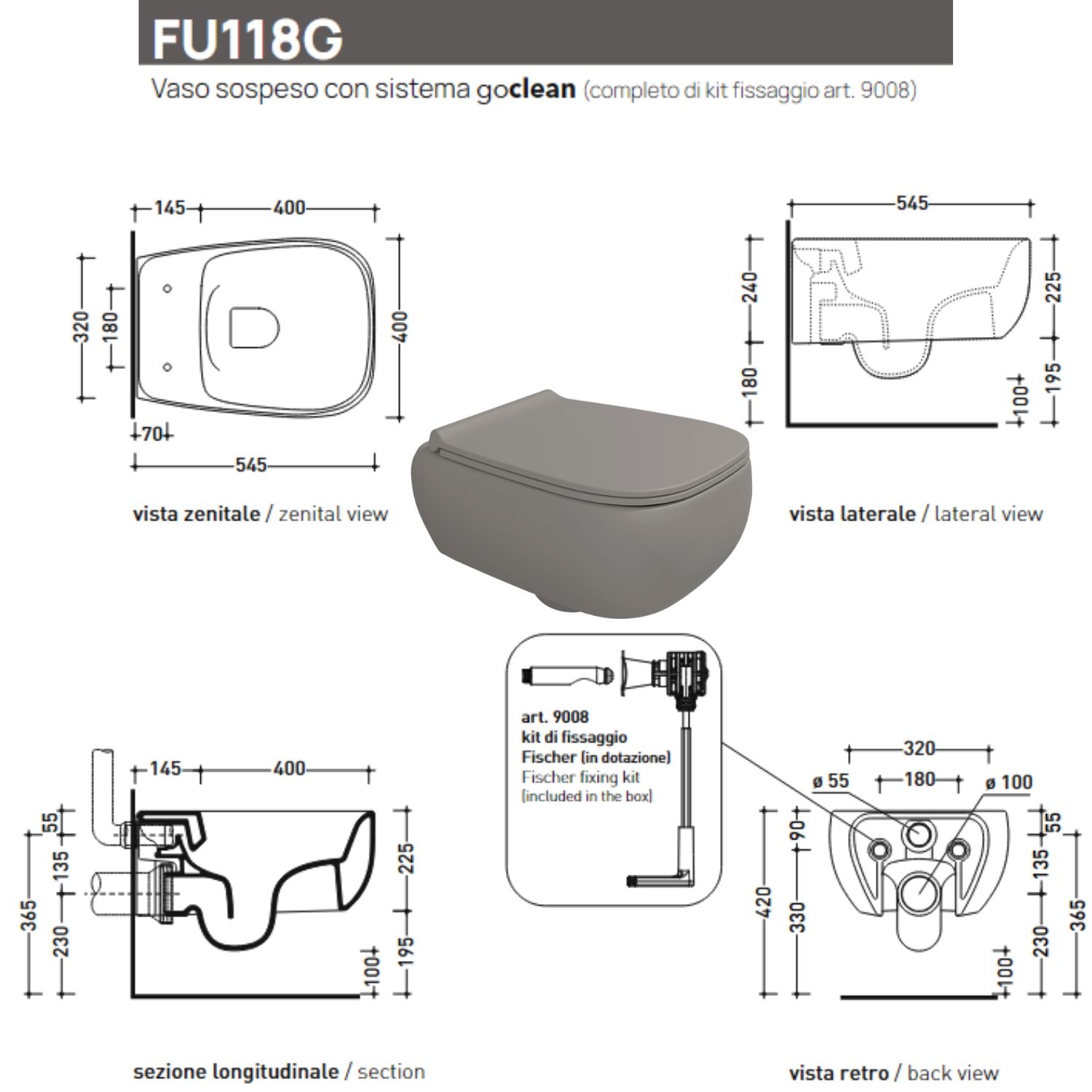 Sanitari sospesi 54x40 cm FLUO FLAMINIA color Cenere