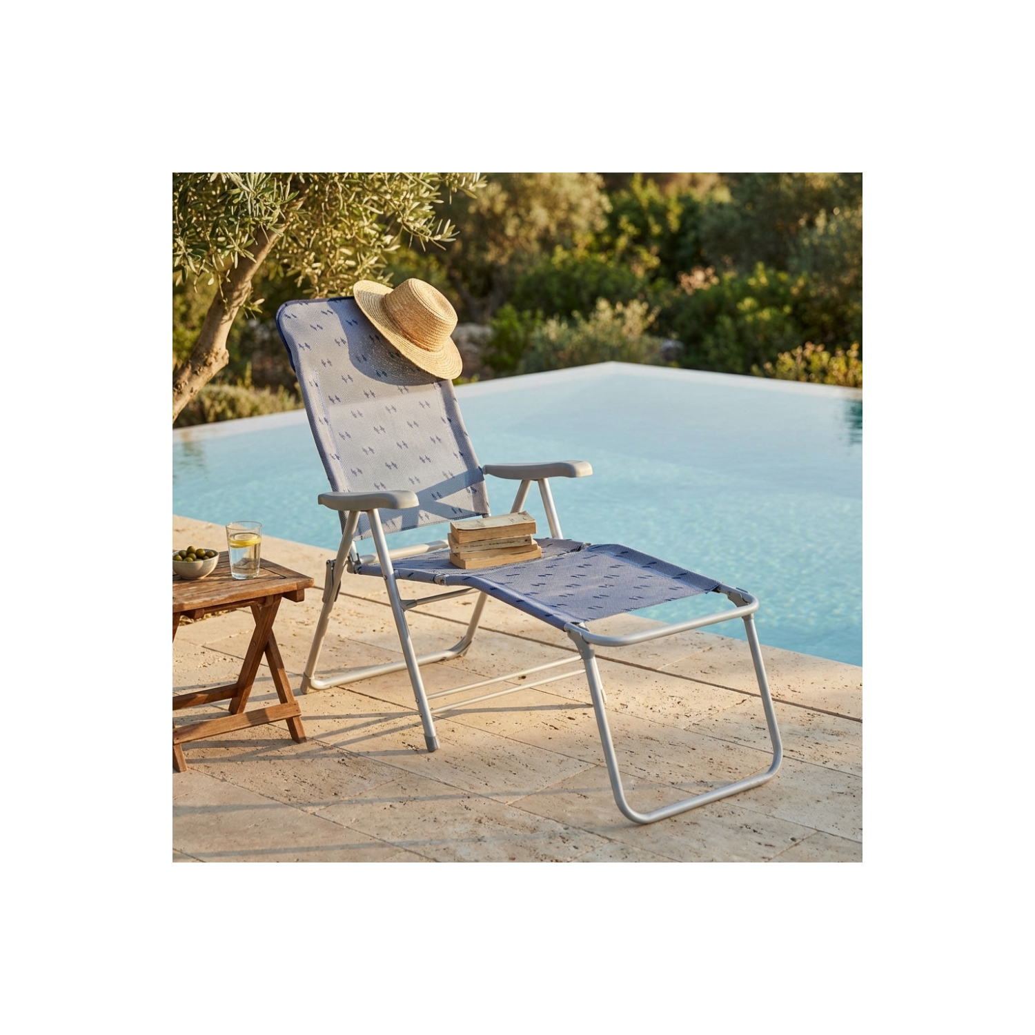 Colore AZZURRO con DECORO portata max 35 kg, tessuto in textilene 2 x 1 Dimensioni: cm 68 x 48 x 41 h