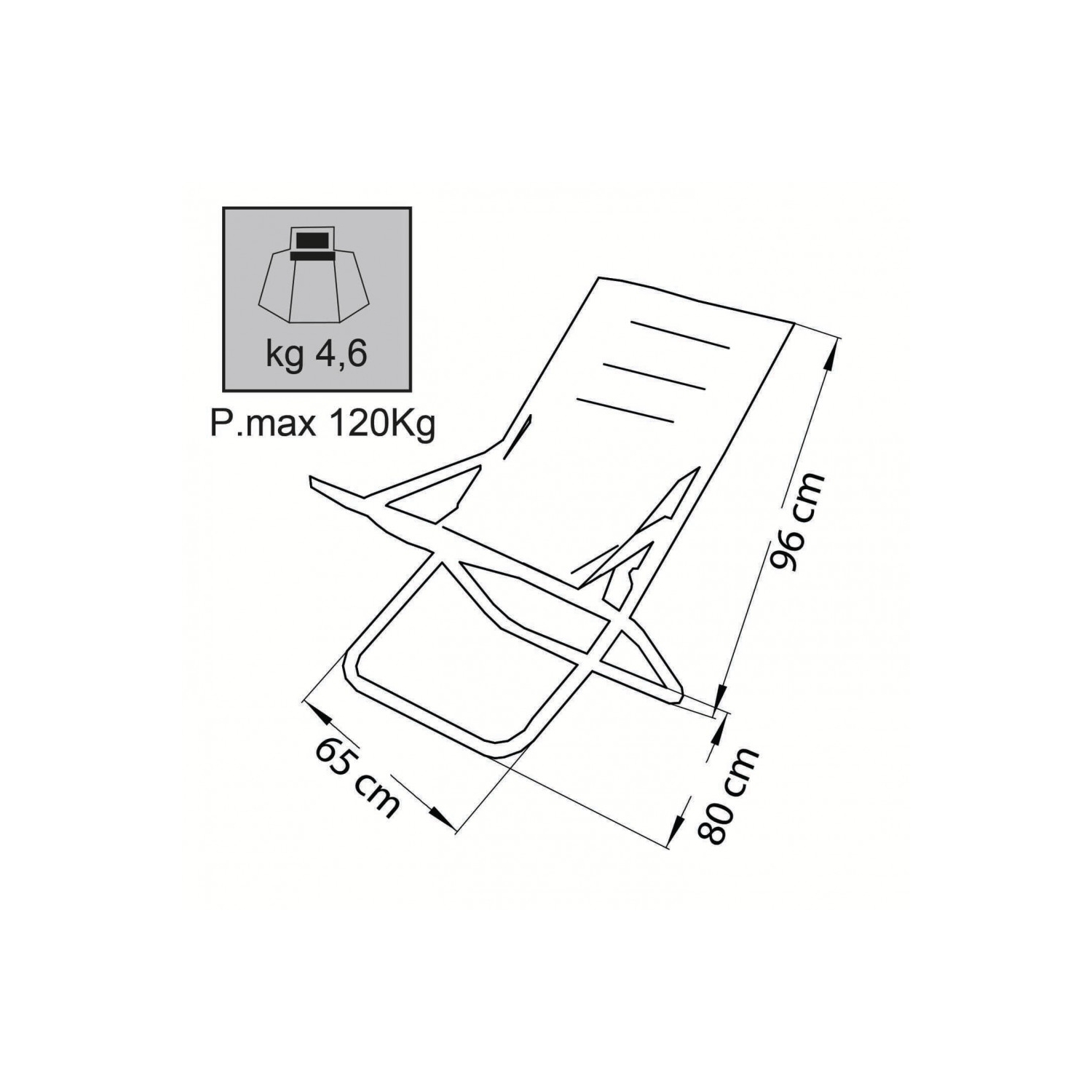 Colore GRIGIO struttura in acciaio Ø 25 mm, portata max 120 kg, tessuto in PVC 600D Dimensioni: cm 65 x 80 x 38/96 h