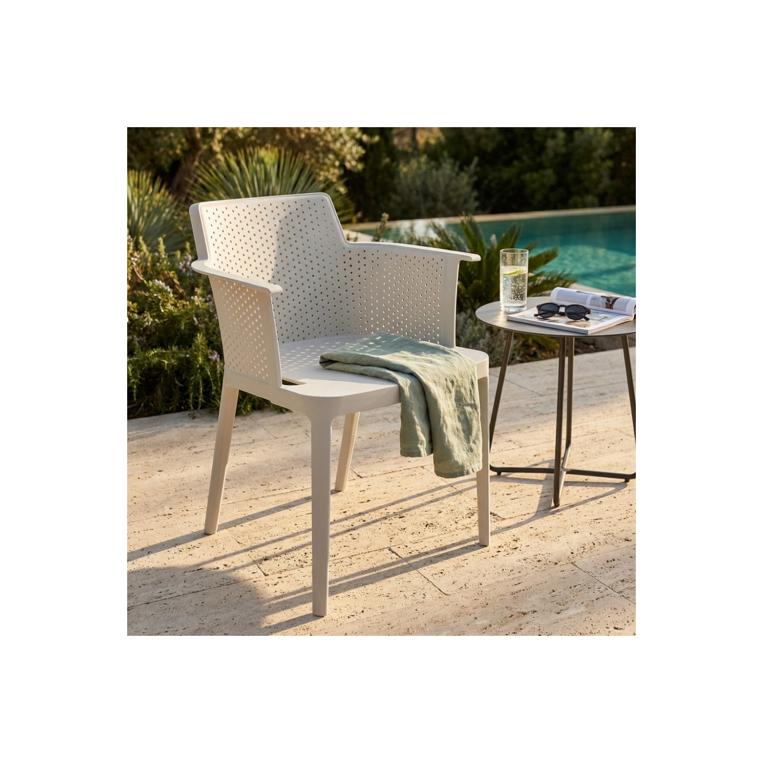 Poltrona in polipropilene impilabile ANTRACITE, BIANCA, VERDE CHIARO, VERDE SCURO, GRIGIA, TORTORA, VERDE PETROLIO, GIALLA o ROSSA Dimensioni: