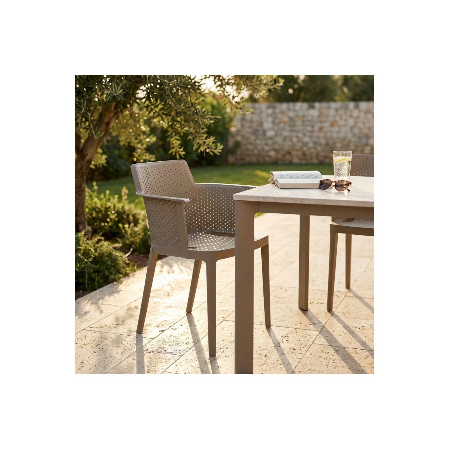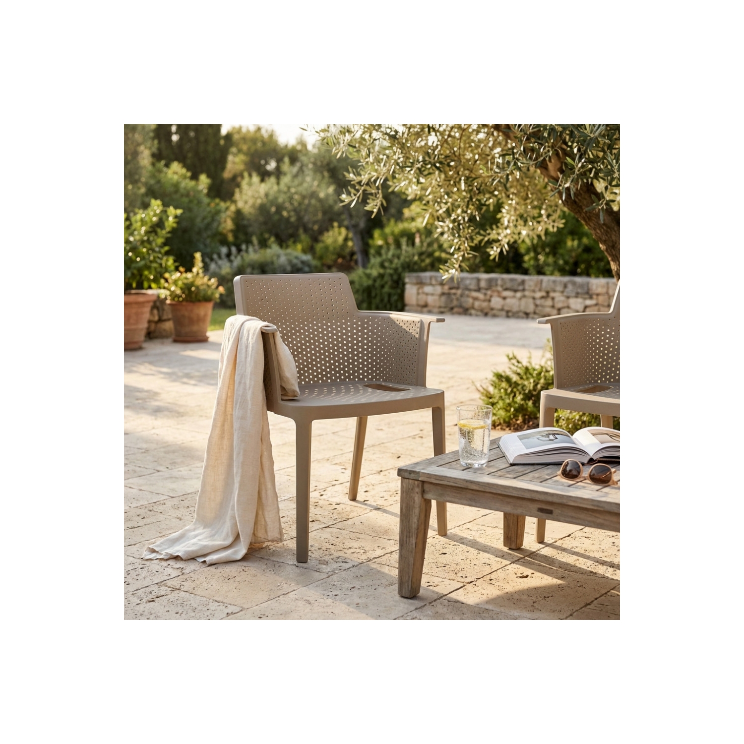 Poltrona impilabile in polipropilene. Dimensioni: 60x58x76.5 h cm Colore: tortora