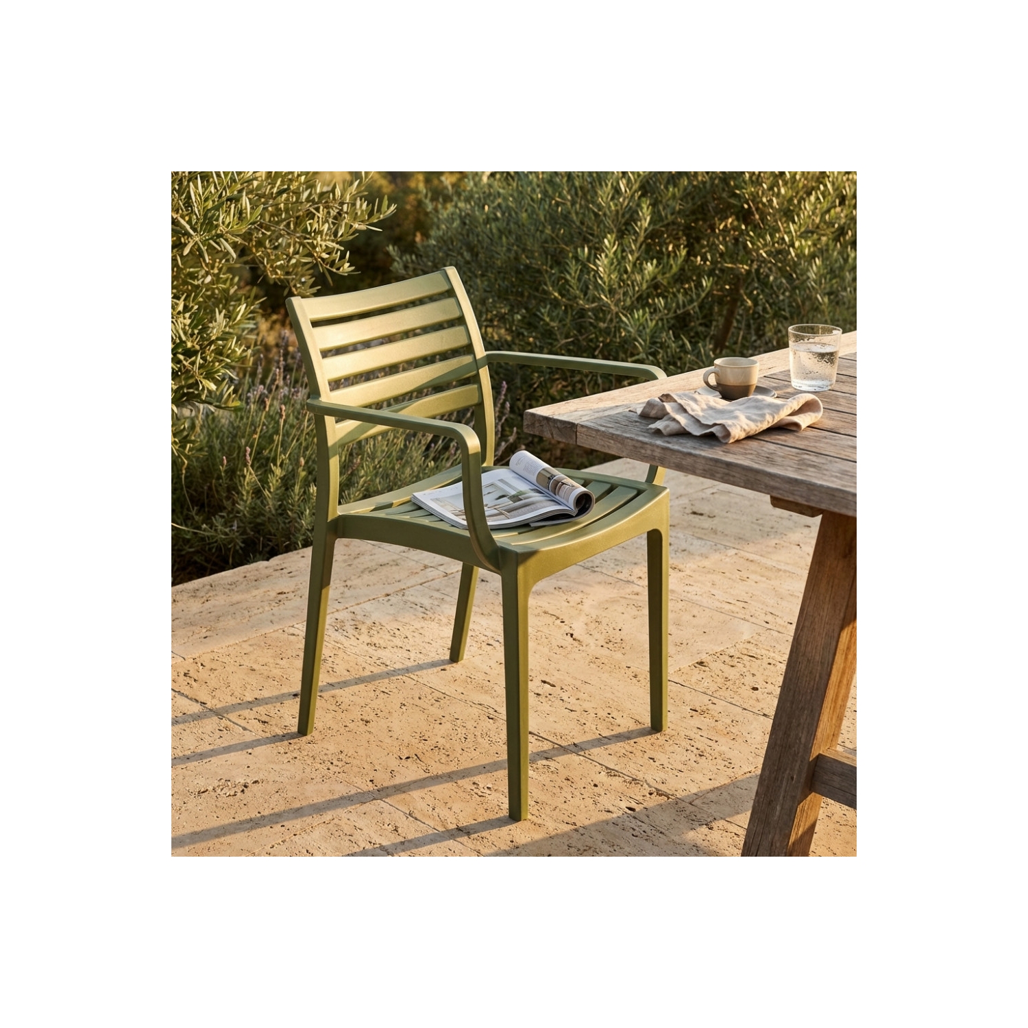Poltrona in polipropilene impilabile ANTRACITE, BIANCA, VERDE PETROLIO, VERDE CHIARO, VERDE SCURO, TAUPE, GRIGIA, TOROTRA o GIALLA Dimensioni: