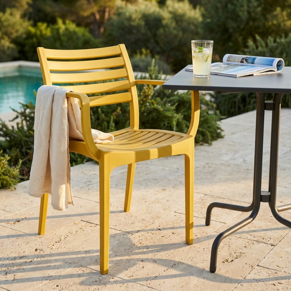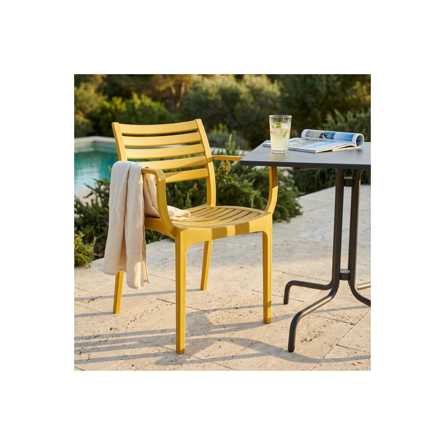 Sedia impilabile in polipropilene. Dimensioni: 58.5x55.2x84h cm Colore: Gialla