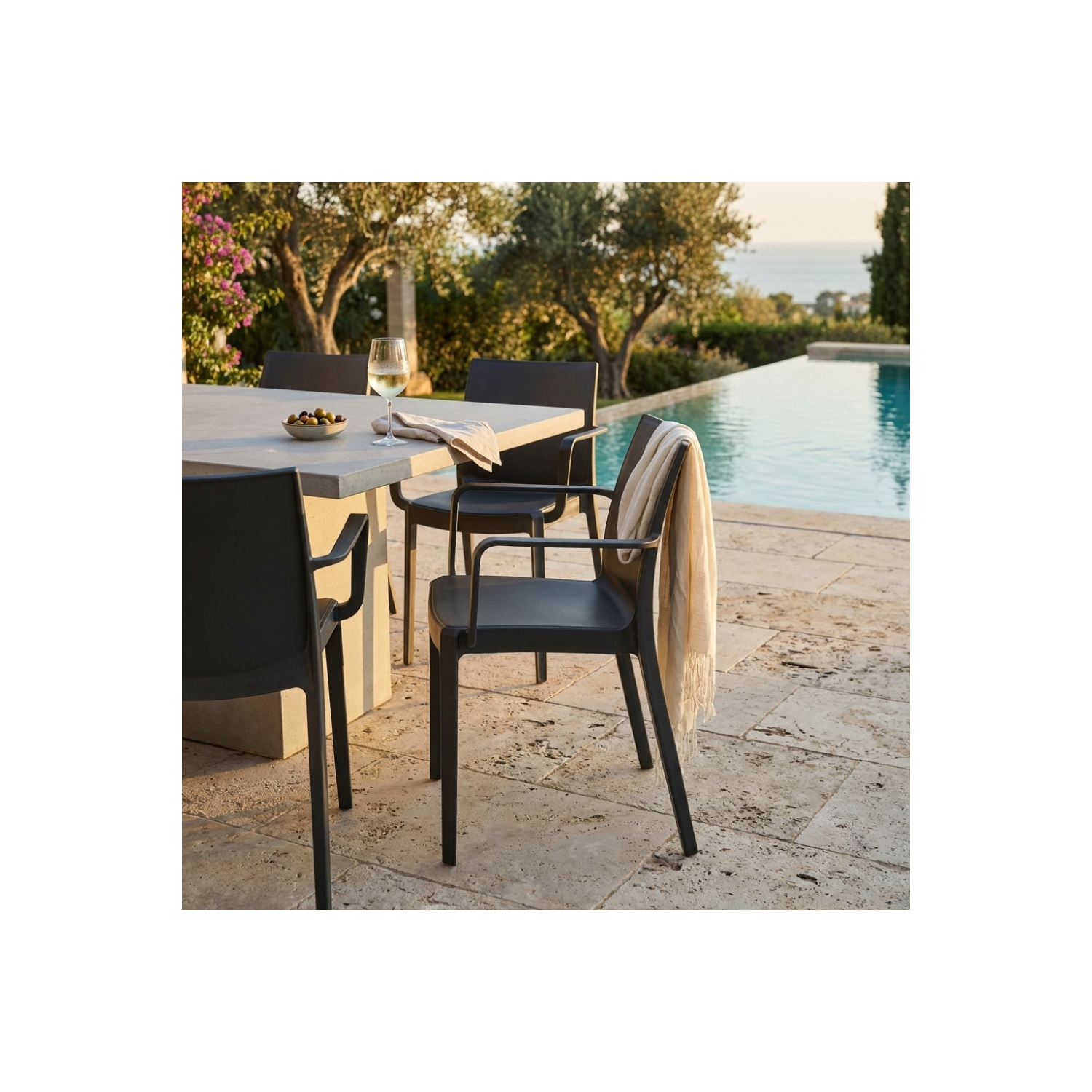 Sedia in polipropilene da esterno con braccioli. Dimensioni: 55x58x82h cm. Colore: Antracite