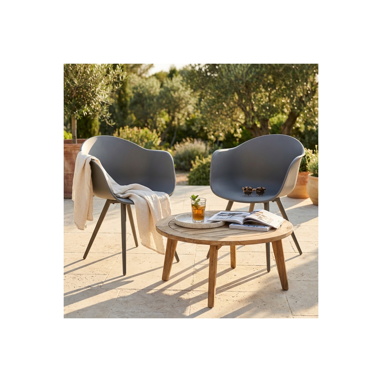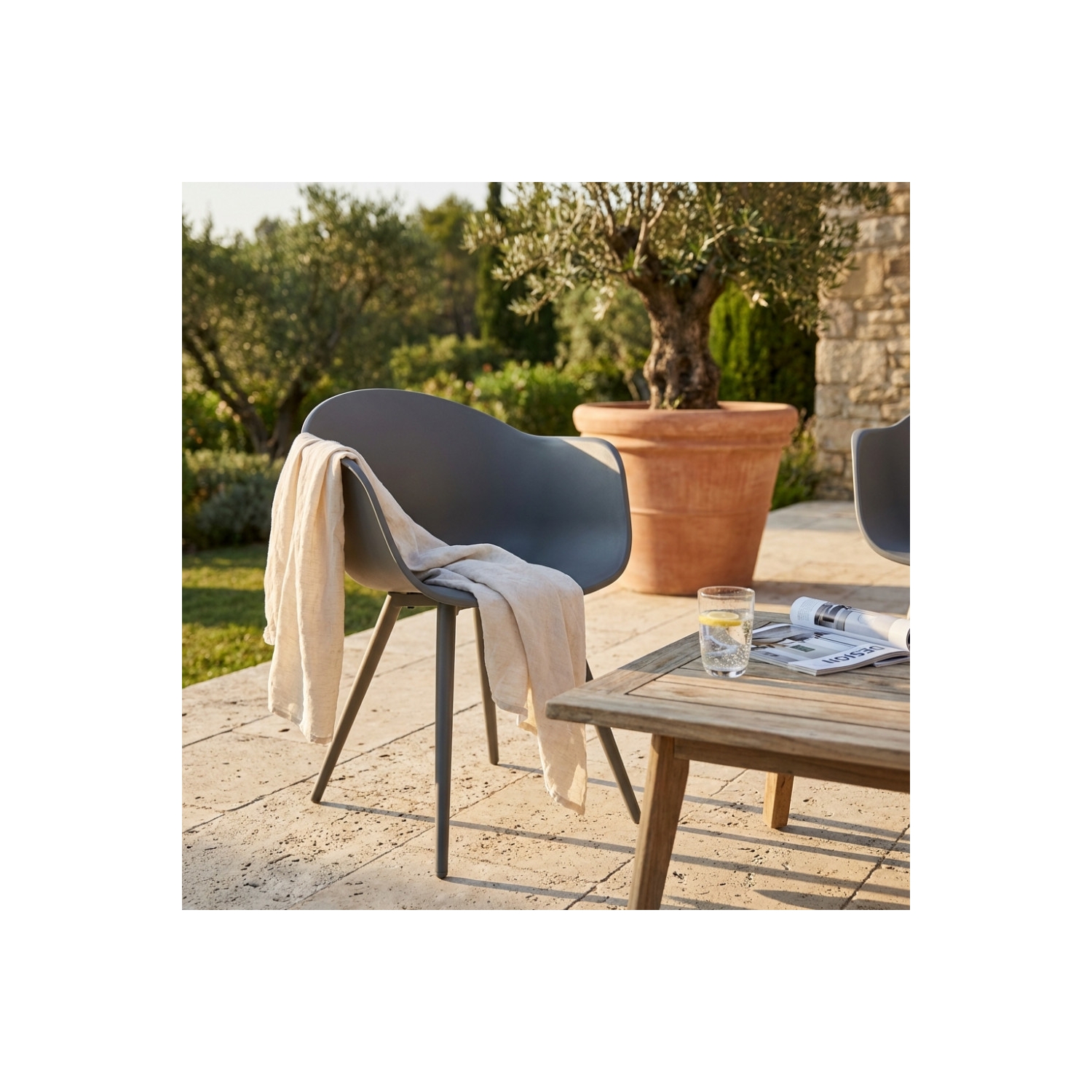 Sedia in polipropilene adatta sia per l'interno che per l'esterno gambe in alluminio. Dimensioni: 61x61x80 h cm. Colore: Taupe