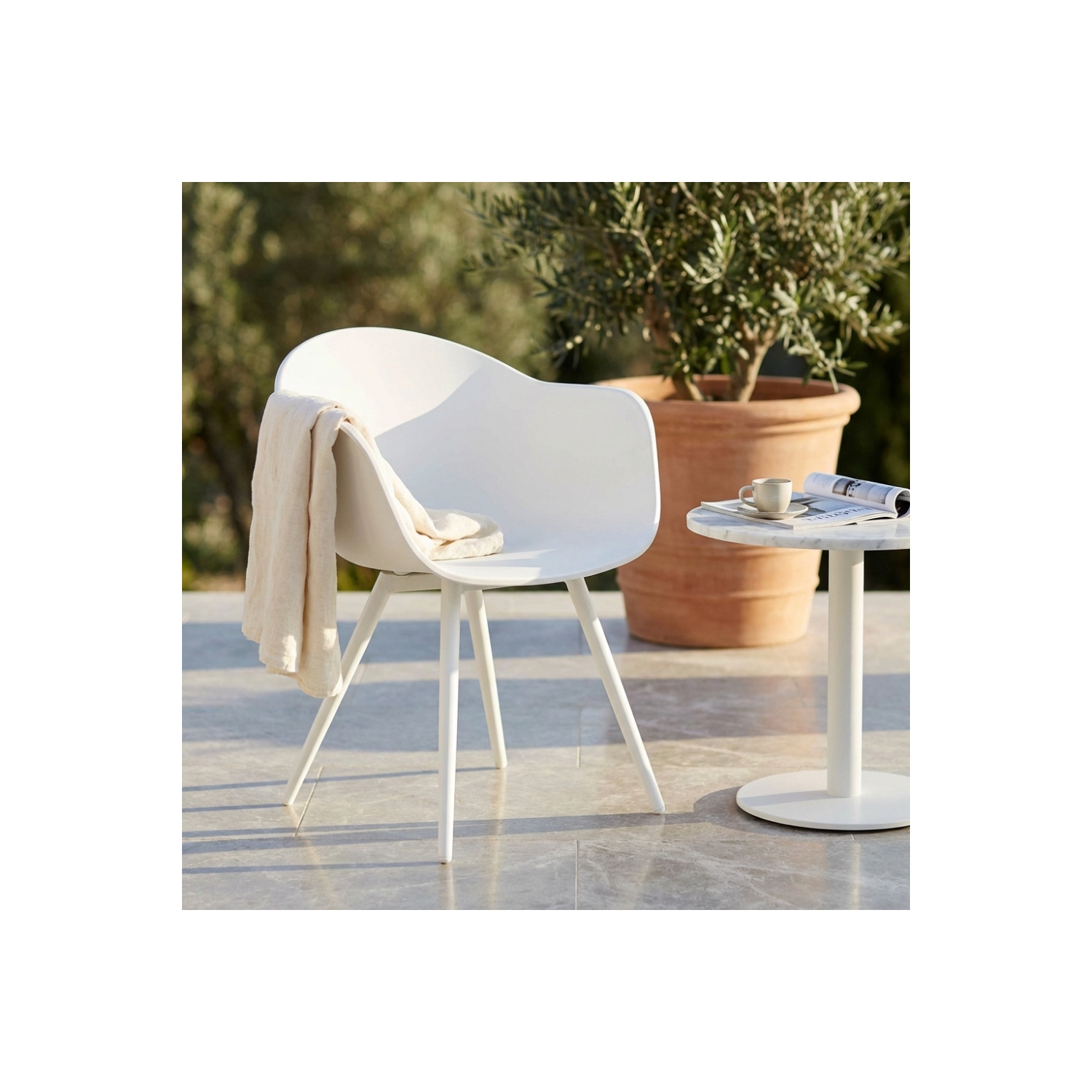 Sedia in polipropilene adatta sia per l'interno che per l'esterno gambe in alluminio. Dimensioni: 61x61x80 h cm. Colore: Bianca
