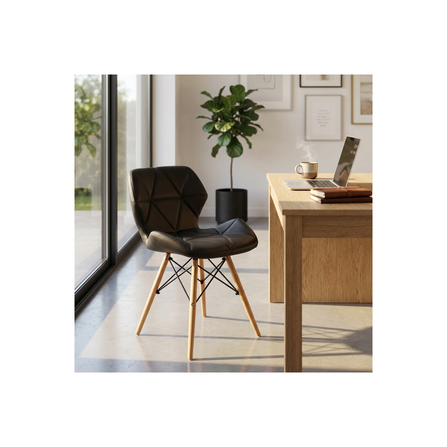 Sedia moderna nera in ecopelle con gambe in legno, struttura in metallo, seduta in PU. Dimensioni: cm 49 l x 41 p x 71 h