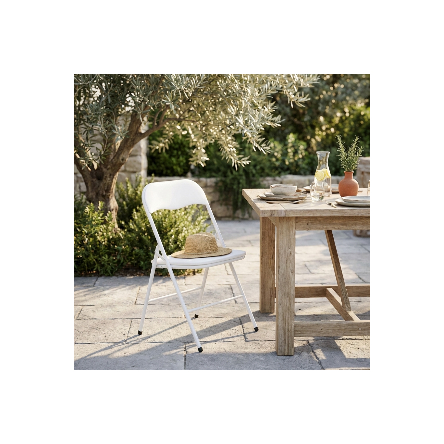 Sedia pieghevole con seduta imbottita in PVC, tubo verniciato BIANCO LUCIDO: Ø19 x 0,8 mm Dimensioni: cm 44 x 45 x 79 h