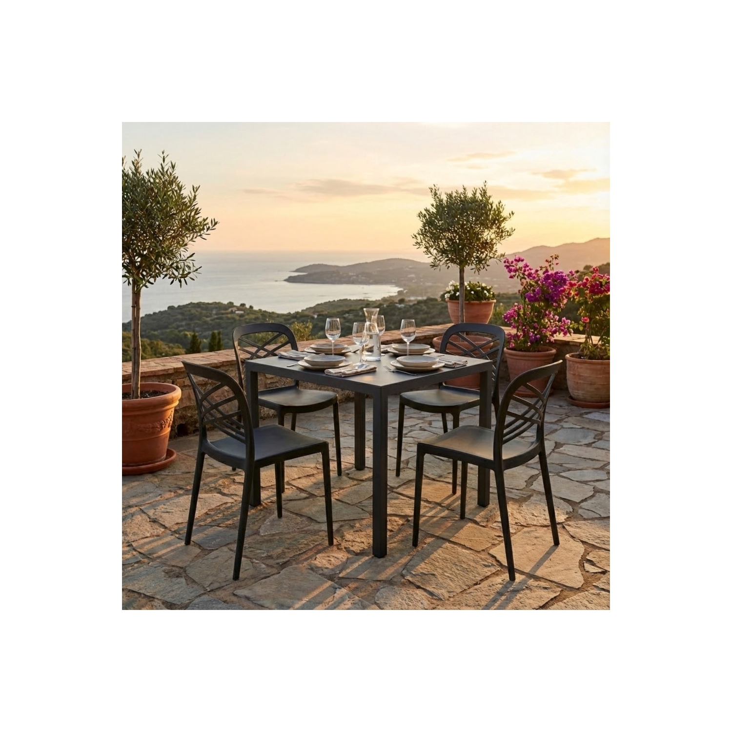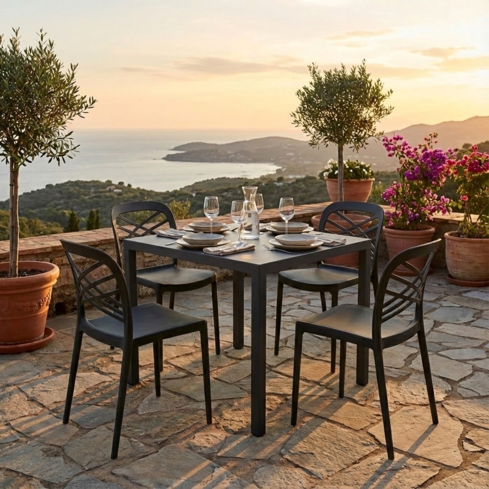 Tavolo autolivellante in metallo verniciato a polvere antracite Dimensioni: cm 80 x 80 x 74 h