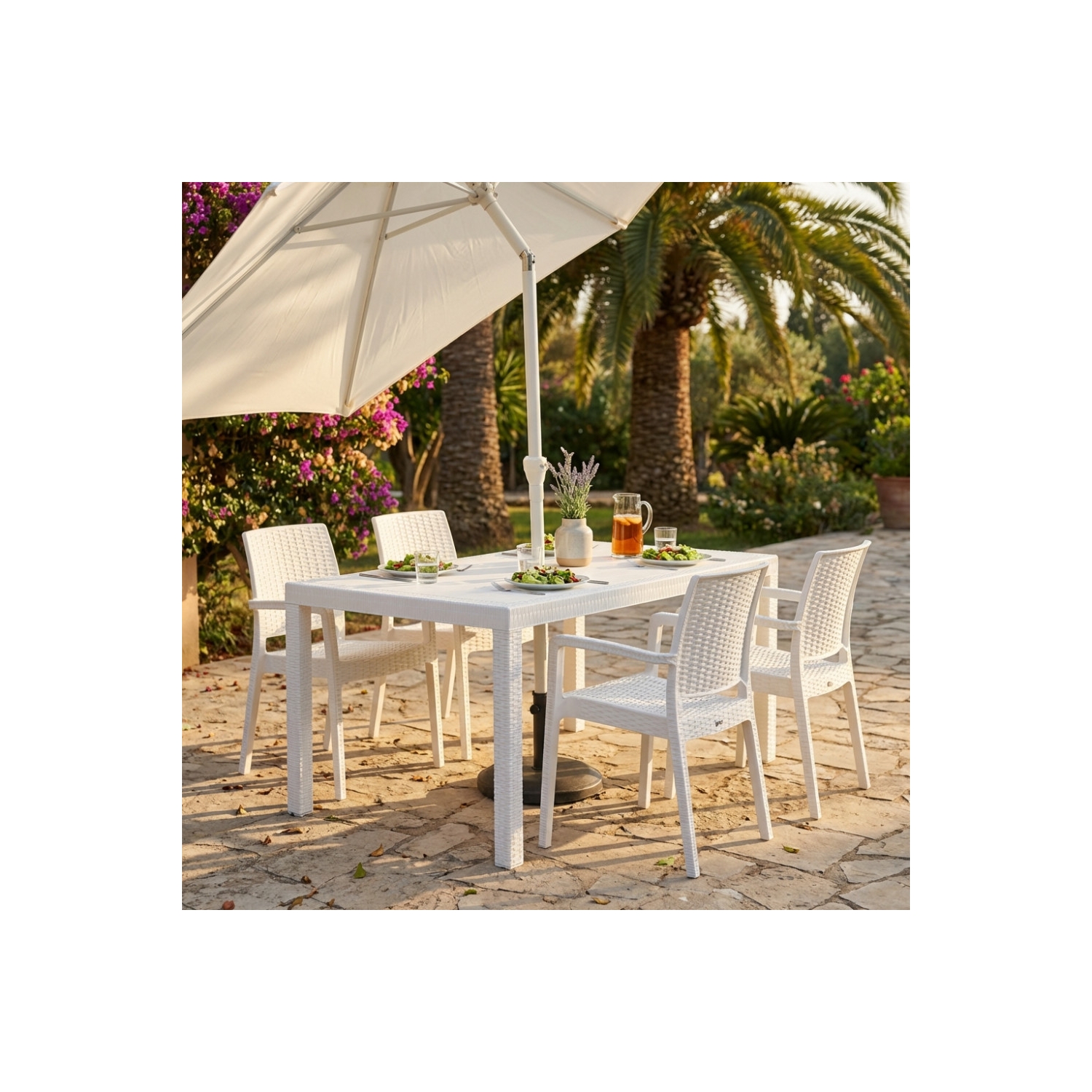 Struttura in plastica stampata, wicker BIANCO. Dimensioni: cm 150 x 90 x 74 h