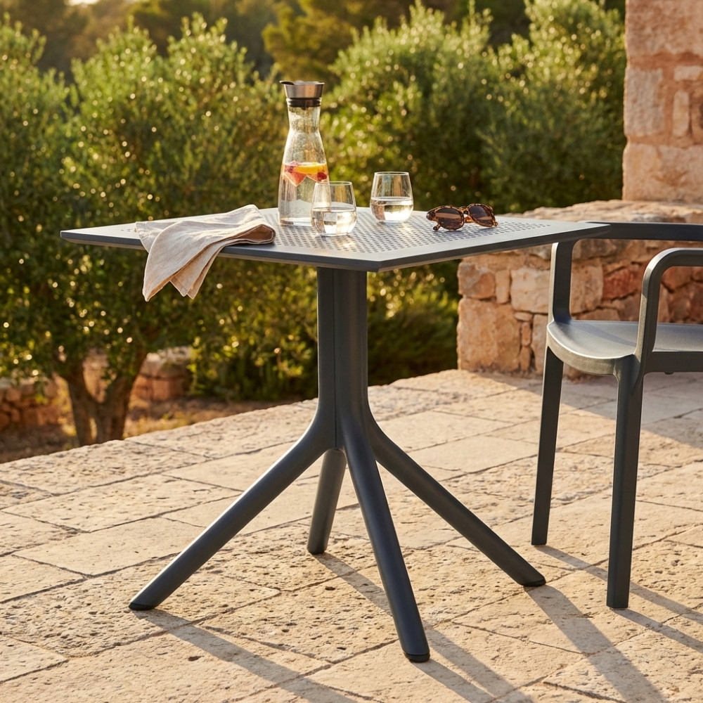 Tavolino bar da esterno in polipropilene ANTRACITE. Dimensioni: cm 80 x 80 x 75 h