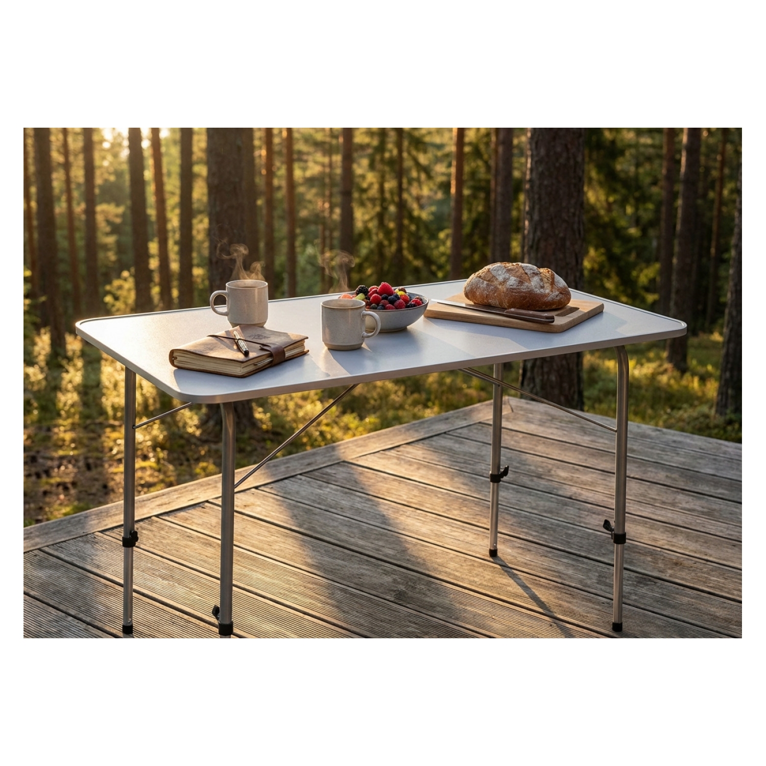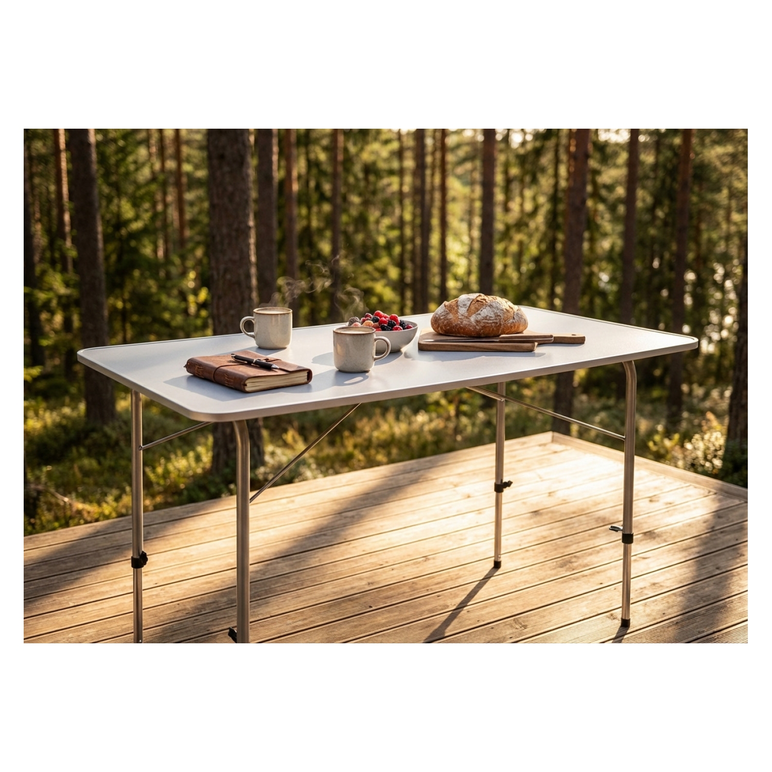 Tavolino pieghevole e regolabile in altezza struttura in metallo verniciato Ø 22 mm e Ø 19 mm piano in MDF Dimensioni: cm 120 x 60 x 50/69 h