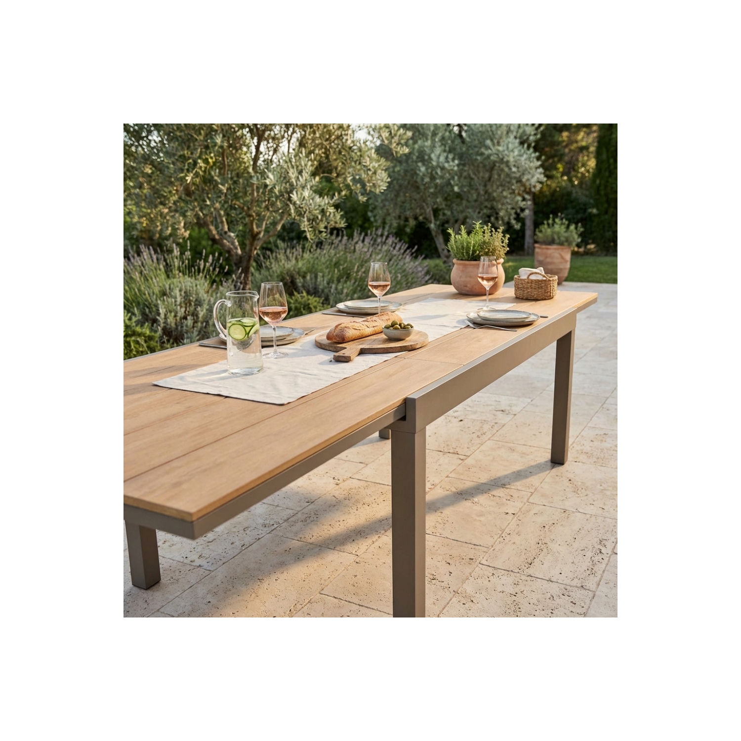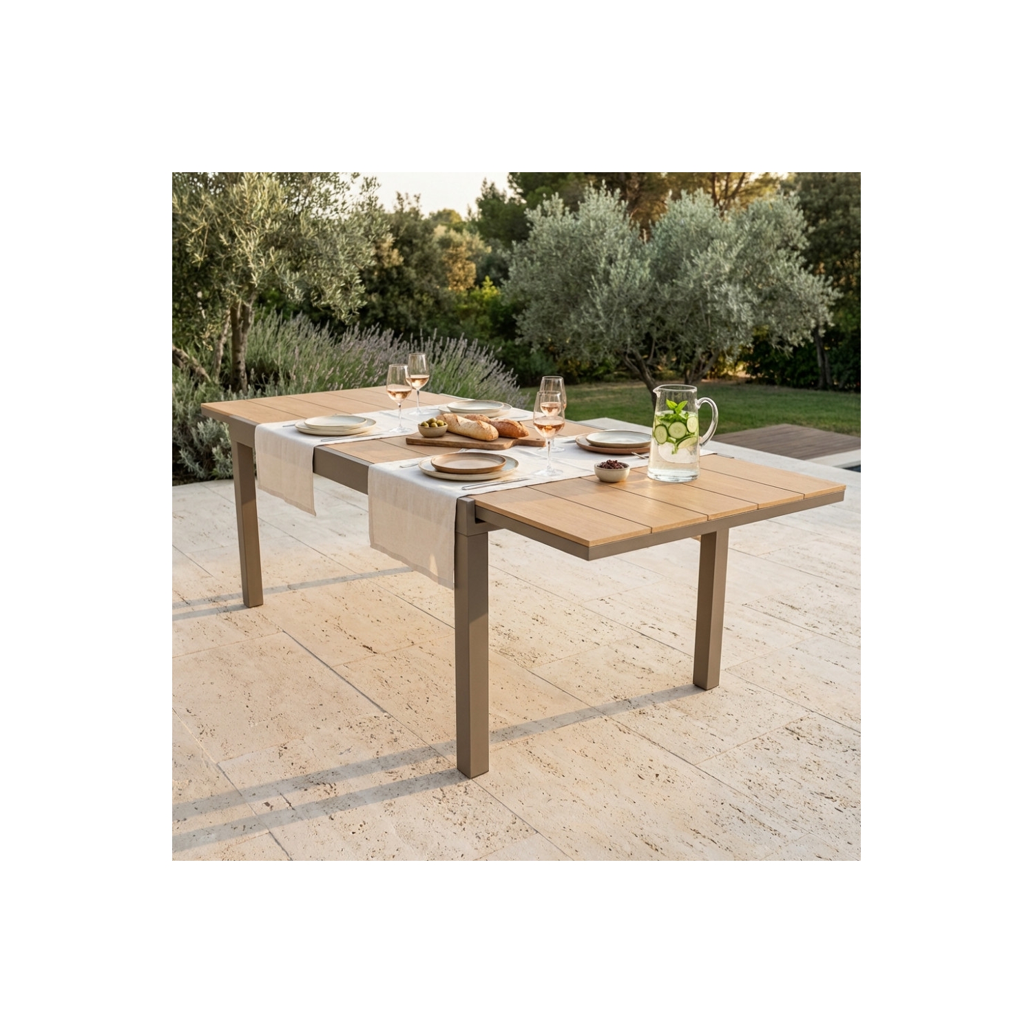 Struttura in alluminio TAUPE piano in polywood color TEAK Dimensioni: cm 160/240 x 95 x 75 h