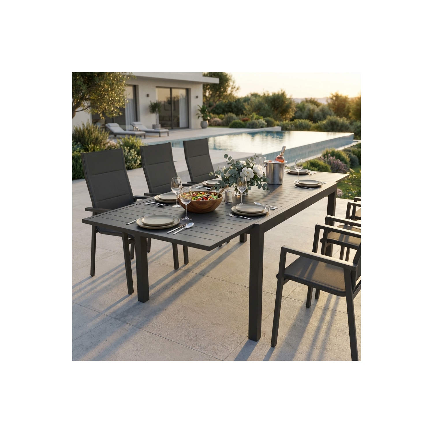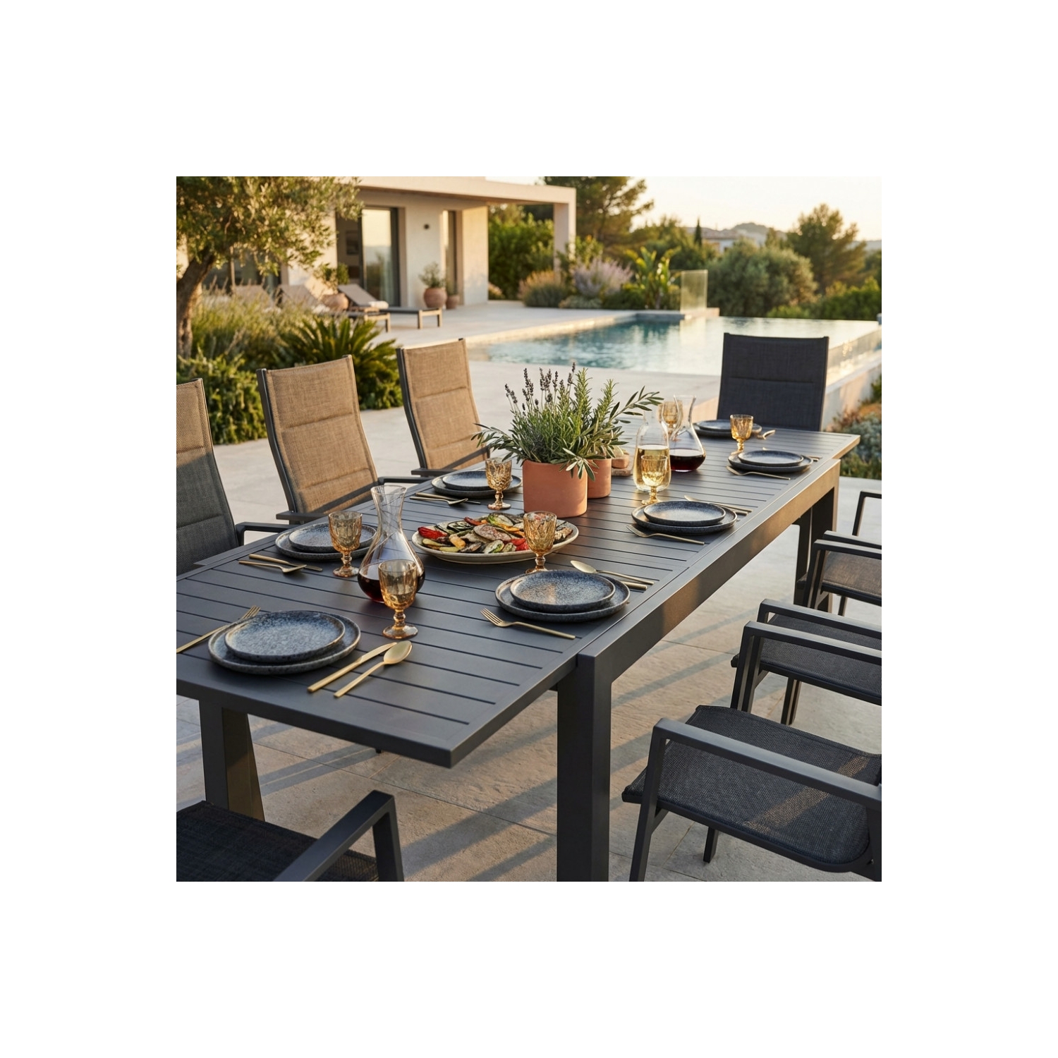Struttura e piano in allumino TAUPE. Dimensioni: cm 160/240 x 90 x 75 h