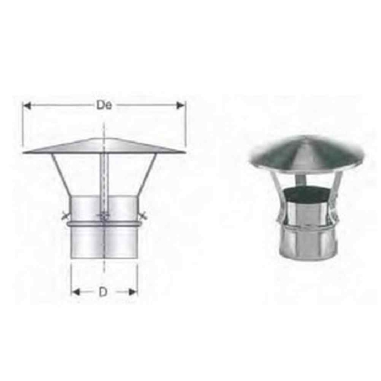 Il cappello cinese con diametro da 80mm è in acciaio AISI 304 ed è ideale per l'installazione come terminale nei sistemi fumari.