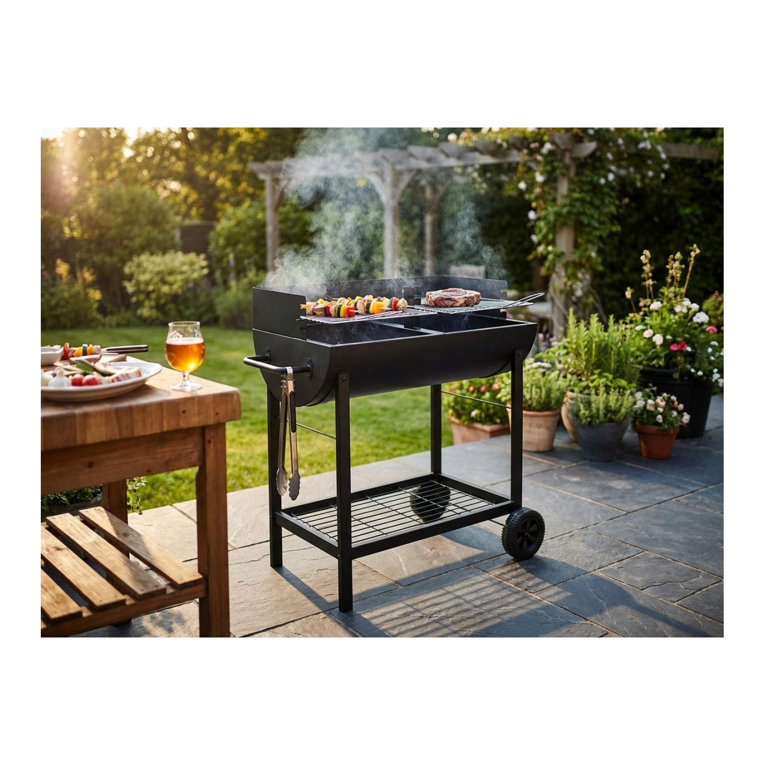 Barbecue in acciaio verniciato nero con 2 griglie 100x47x94h - Wisconsin