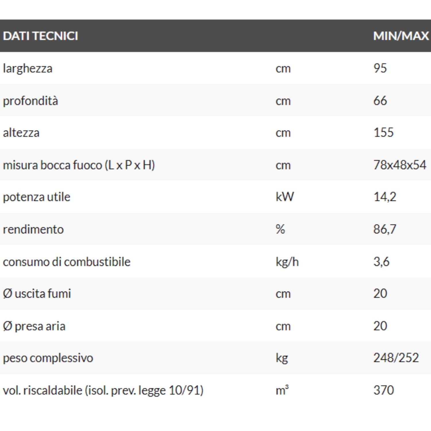 - Volume riscaldabile: fino a 370 m³