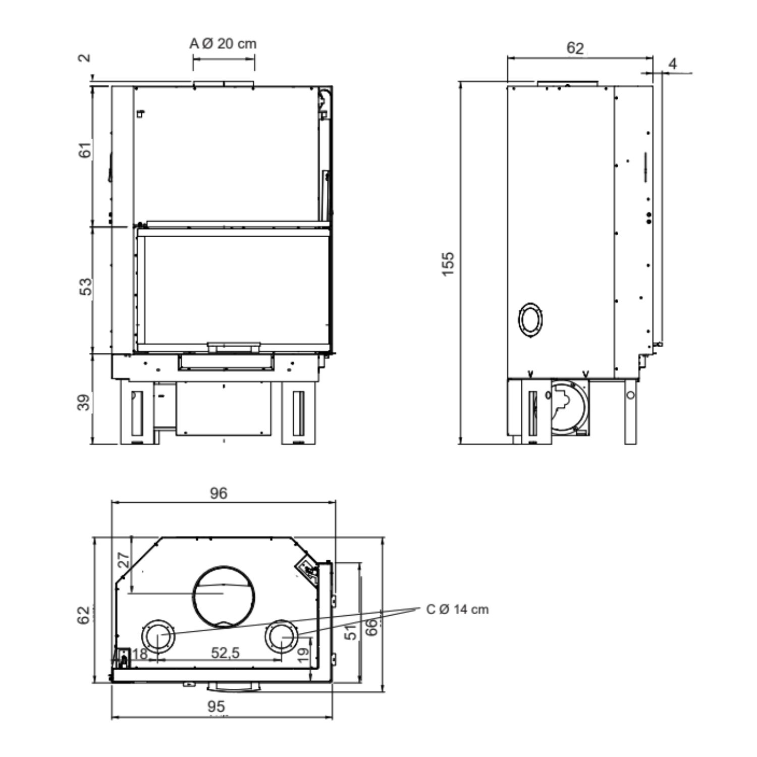 - Uscita fumi: Ø 20 cm superiore