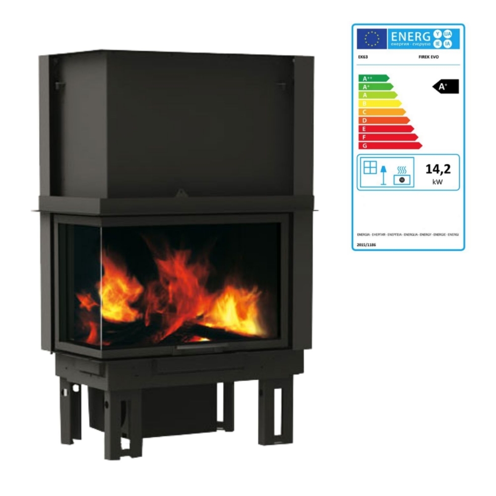 Focolare a legna angolare EK63 Firek EVO 2 canalizzabile con vetro laterale destro