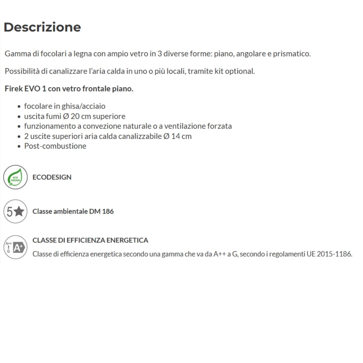 - Conforme direttive Ecodesign e classe ambientale DM 186