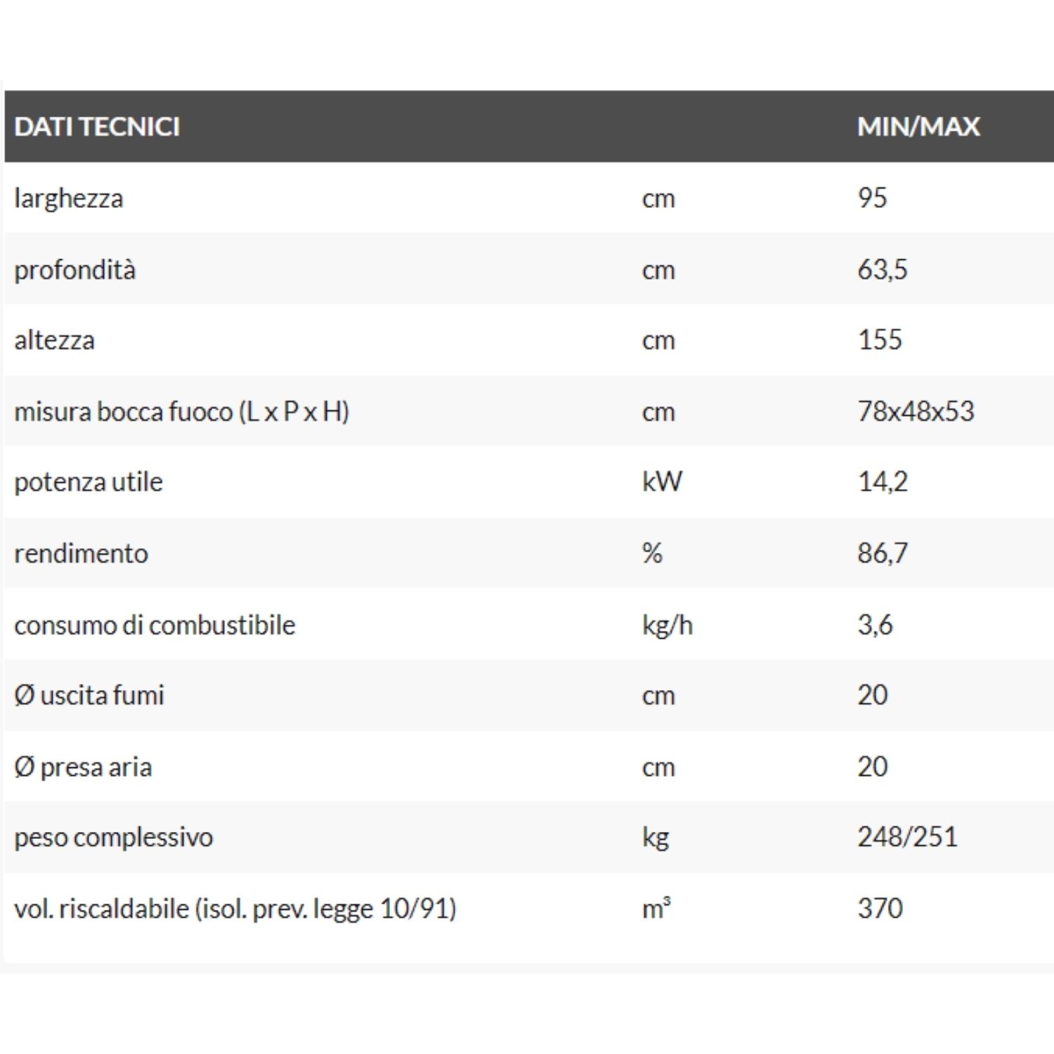 - Volume riscaldabile: fino a 370 m³