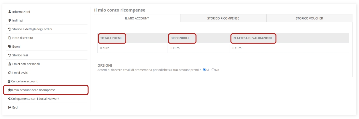 Per consultare lo stato dei tuoi premi fedeltà, accedi al tuo account personale: