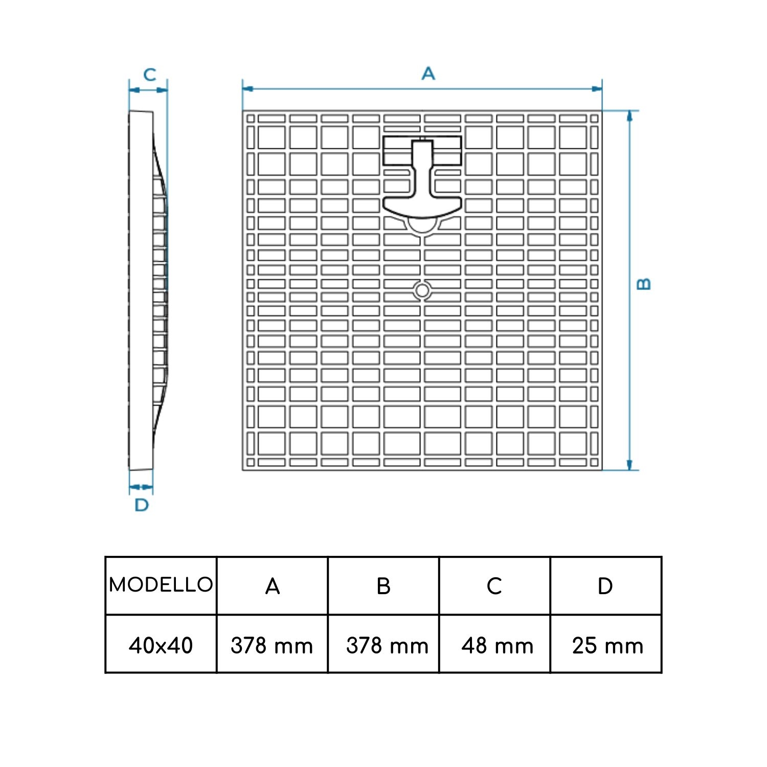 Chiusino monolitico in PVC grigio completo di telaio utilizzabile su pozzetti in mattoni e cemento, posti in opera o preesistenti. Disponibile in varie misure.