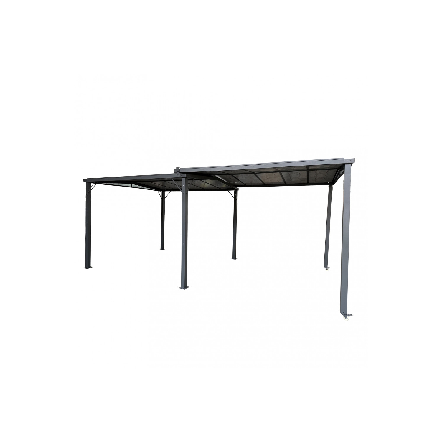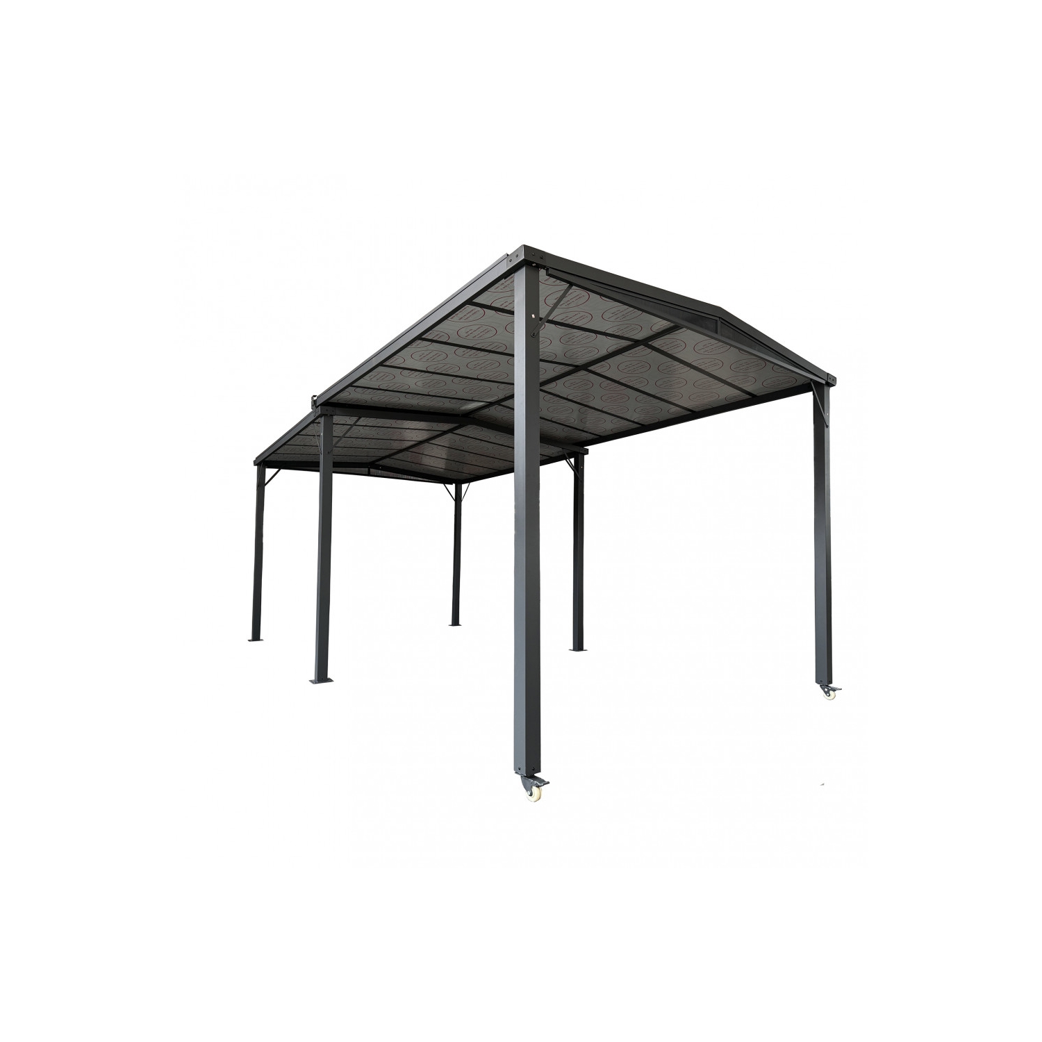 Gazebo con ruote allungabile da 3 fino a 5,7 metri con copertura in policarbonato. Dimensioni 3x3 metri allungabile fino a 5,5 metri.