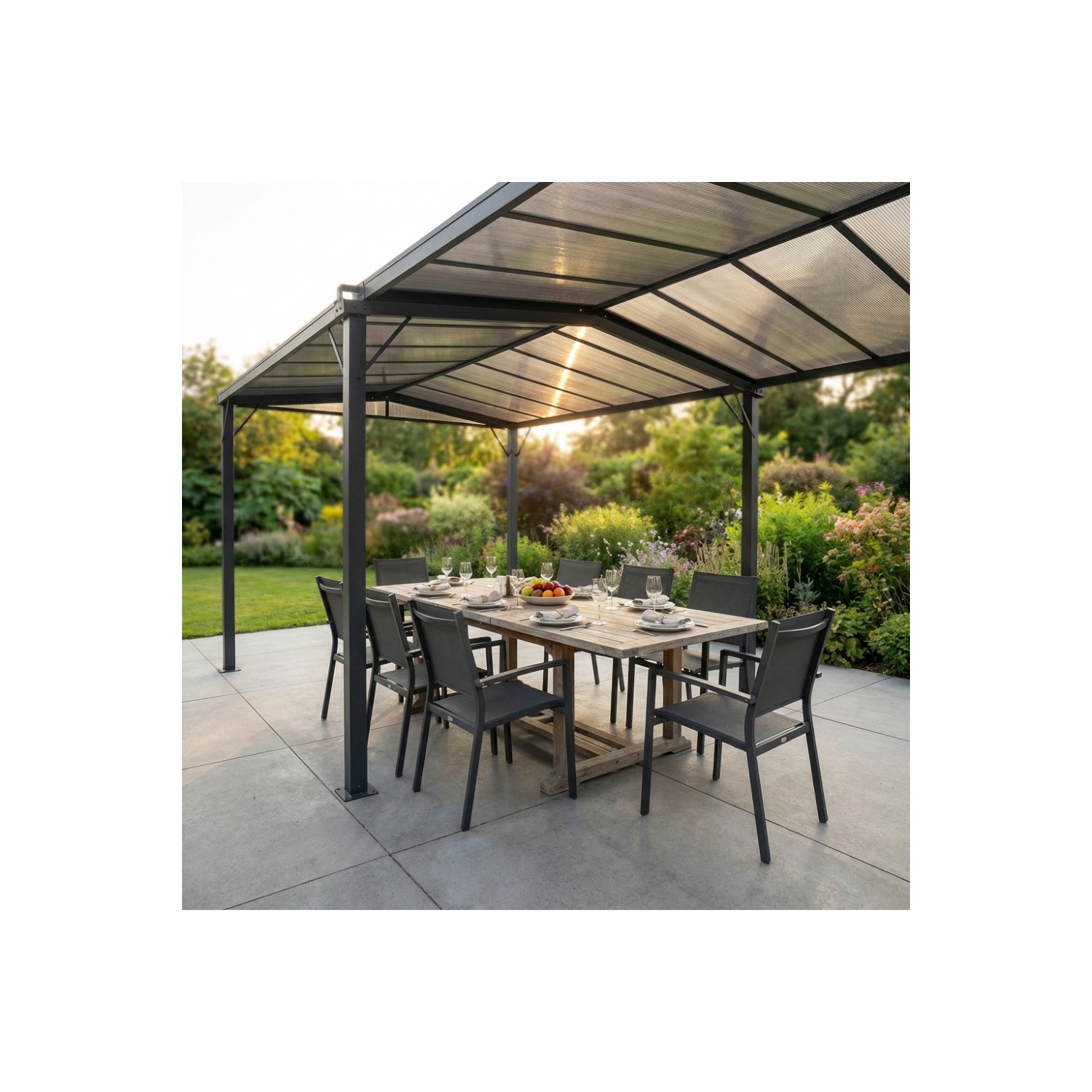 Gazebo allungabile da 3 fino a 5,7 metri con copertura in policarbonato