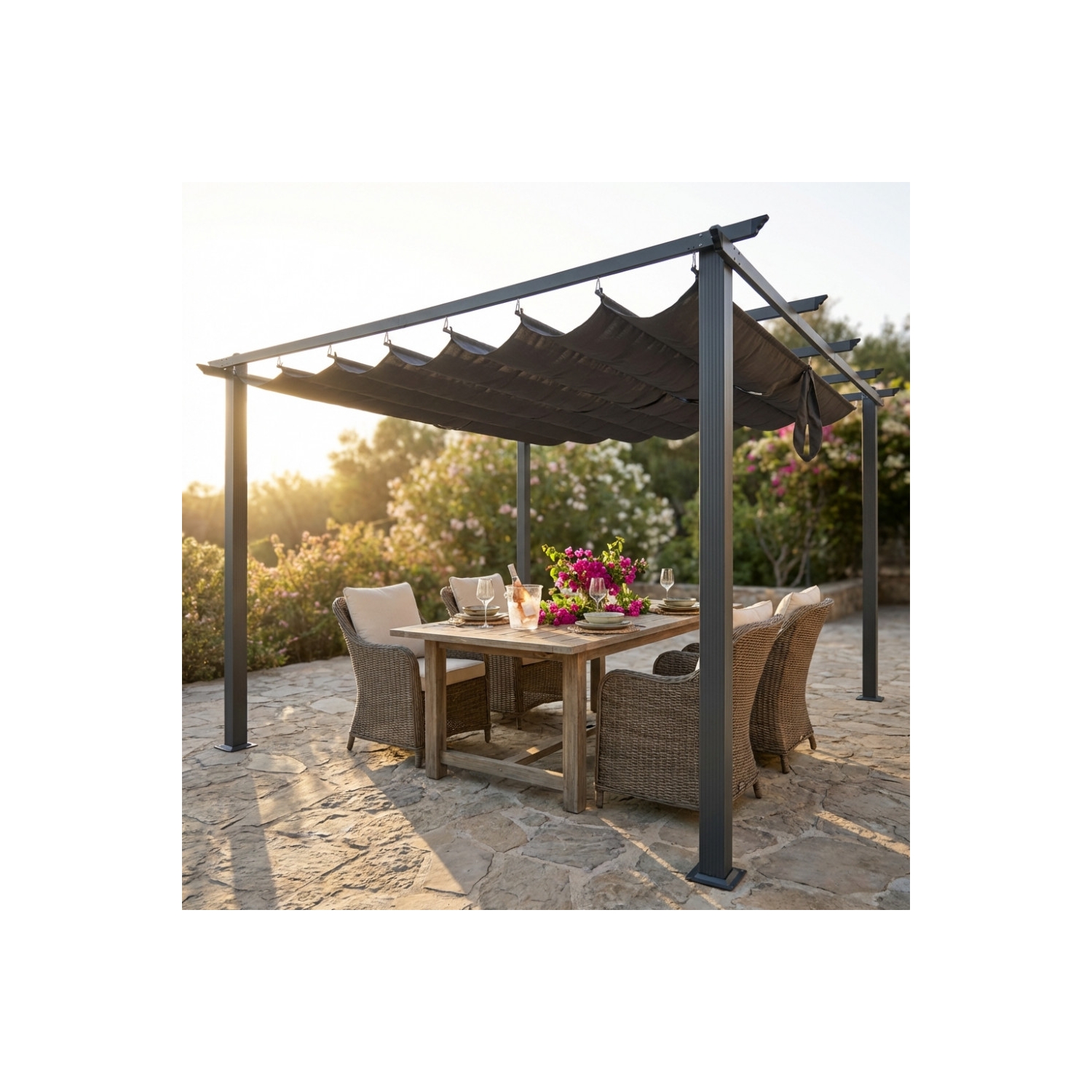 Gazebo 4x4 metri antracite con telo grigio - Astoria. Dimensioni:396x396x230cm