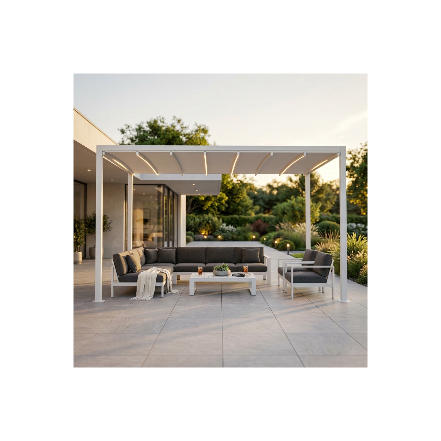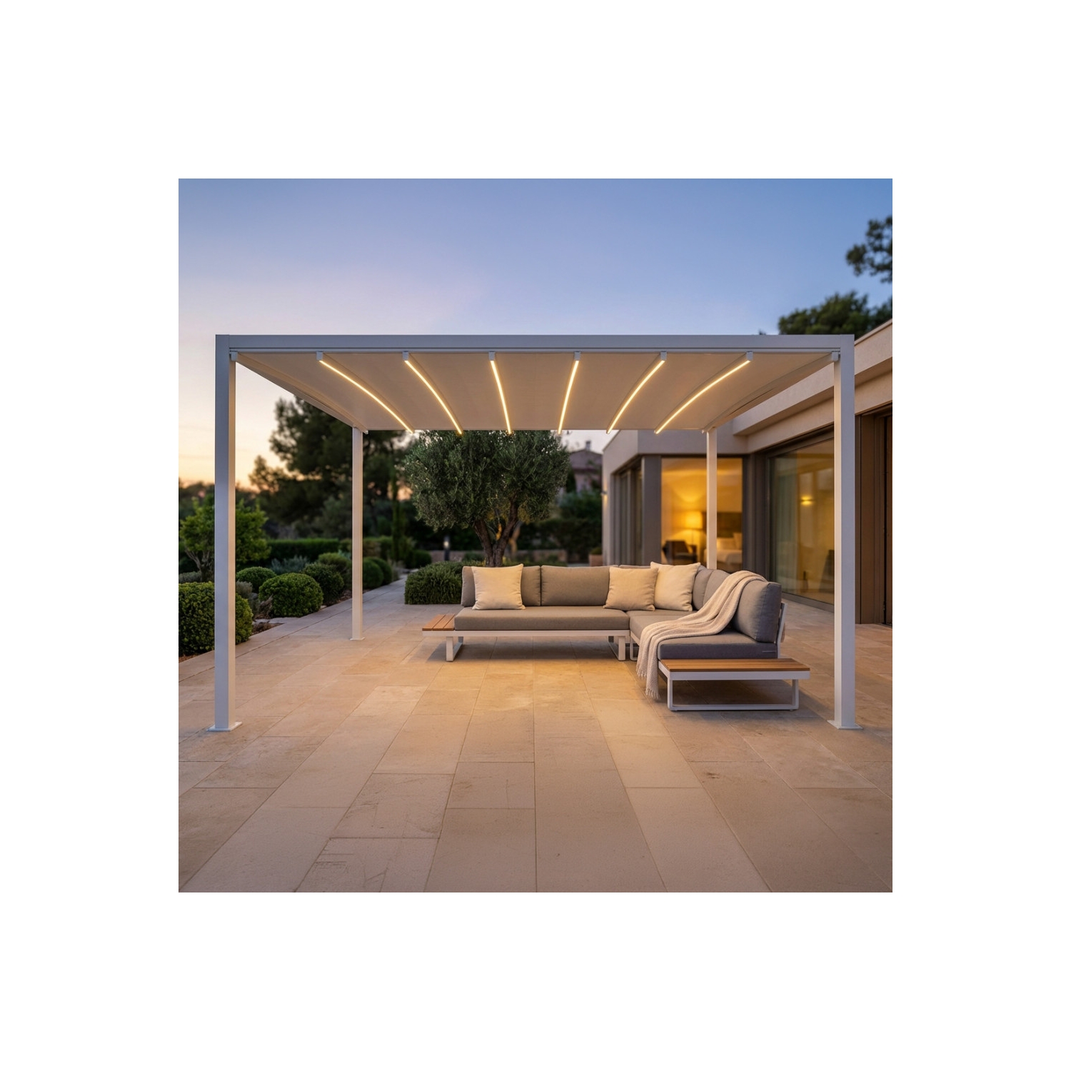Pergola 3x3 mt con led e copertura retrattile motorizzata - bianca