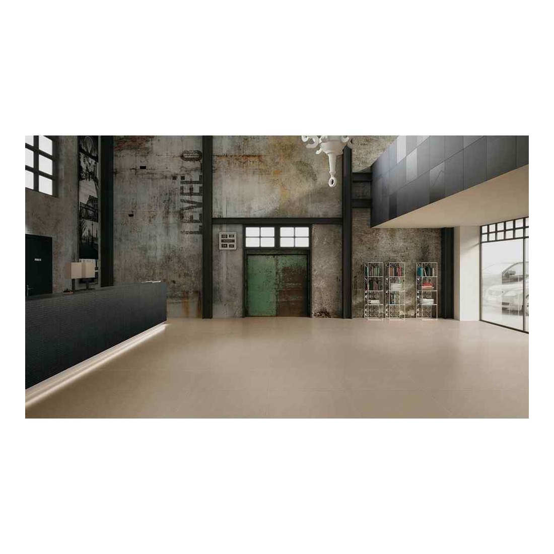 Il pavimento in gres porcellanato fa parete della collezione Re Plain di Mirage.
