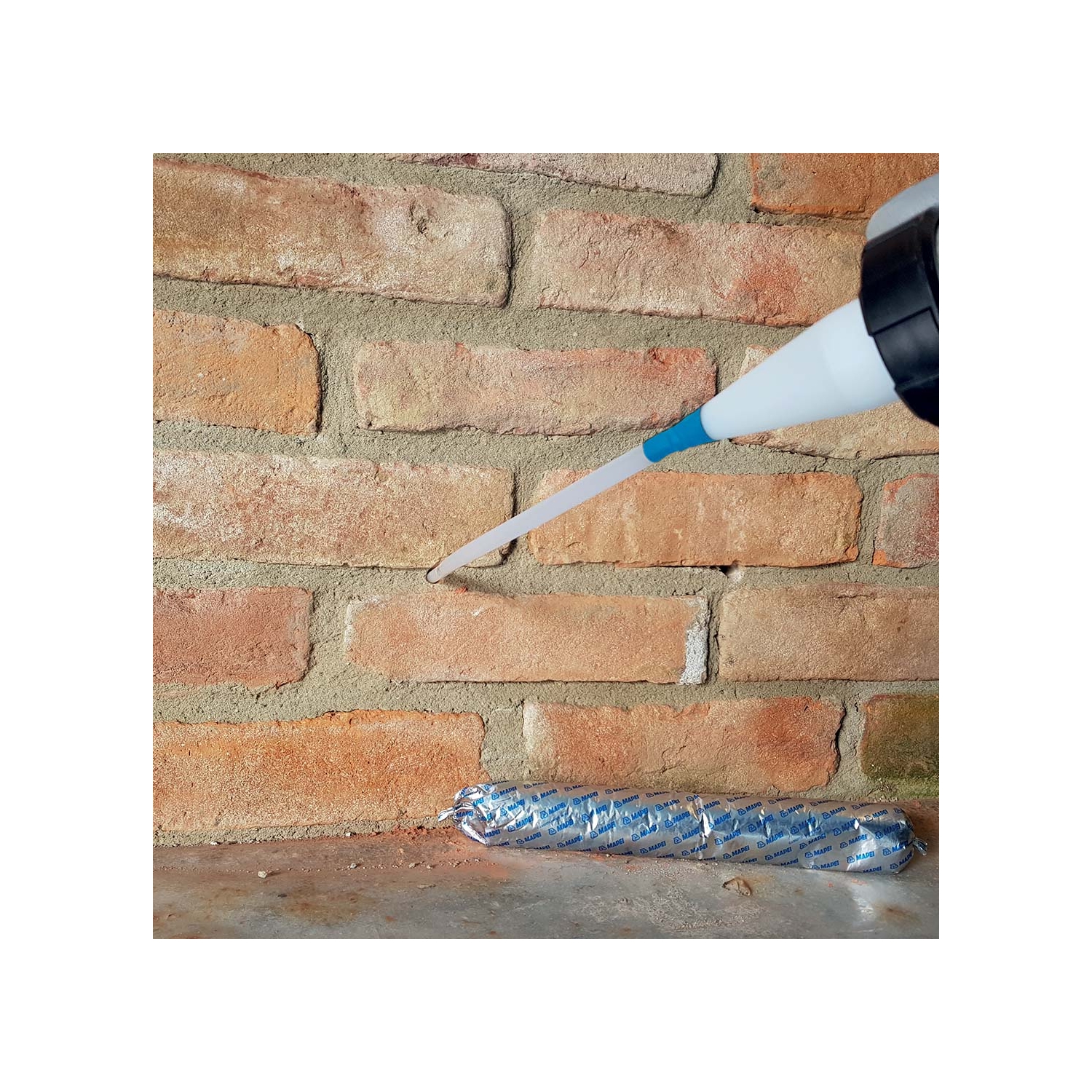 Il Mapestop Cream è disponibile in cartucce da 600 ml è un emulsione cremosa, a base di silano, ideale per la realizzazione di barriere chimiche contro l’umidità di risalita capillare.