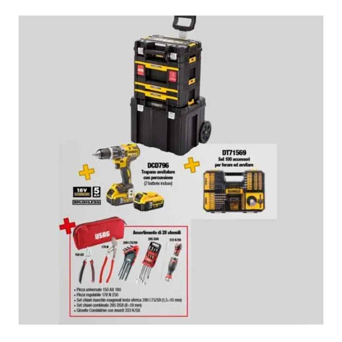 Kit DWUSK017 DeWalt trolley in TStak + Trapano DCD796 + Utensili