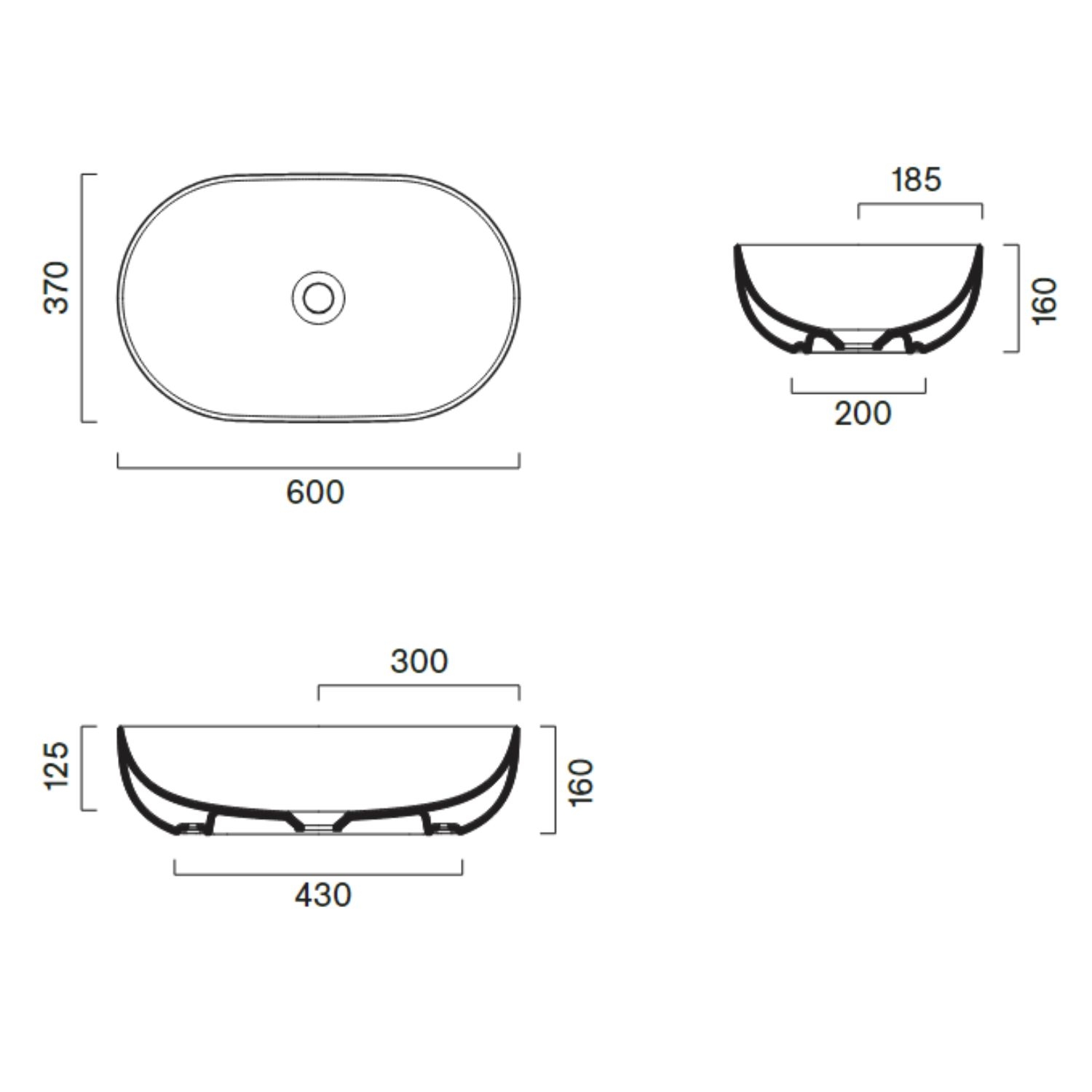 Lavabo ellittico in ceramica senza troppopieno. Installazione ad appoggio. Smalto antibatterico Cataglaze+.