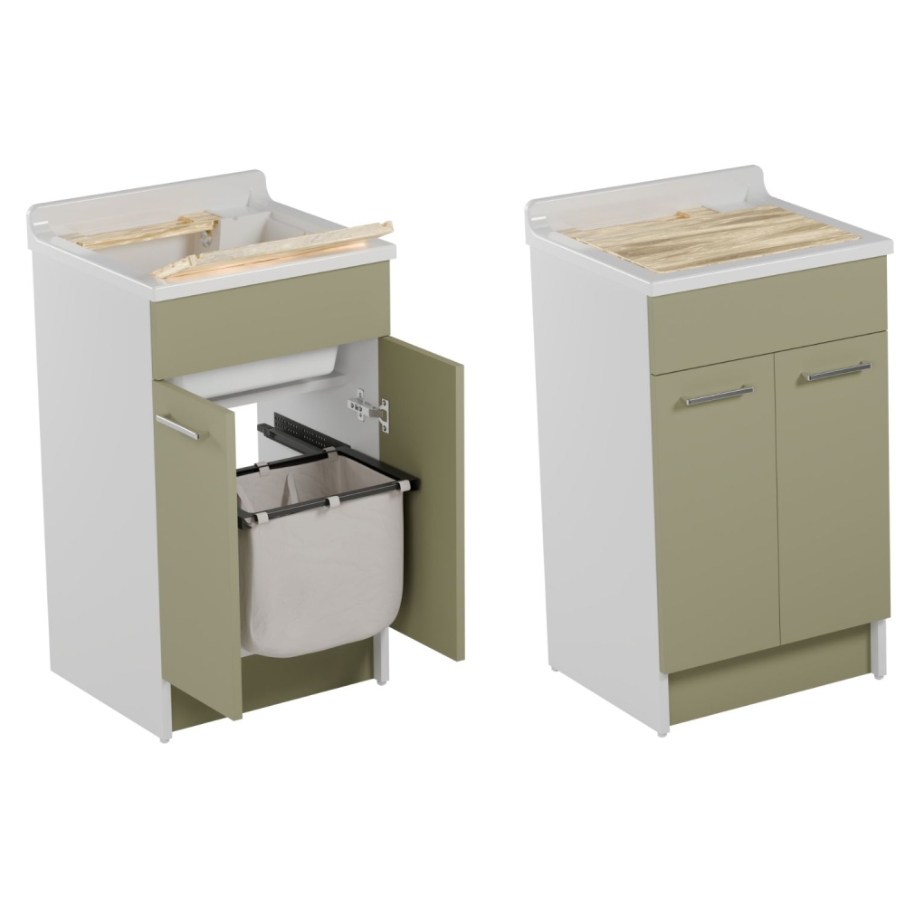 - Completo di: cesto portabiancheria (scorrevole ed estraibile), asse lavapanni in legno massello, sifone e troppopieno