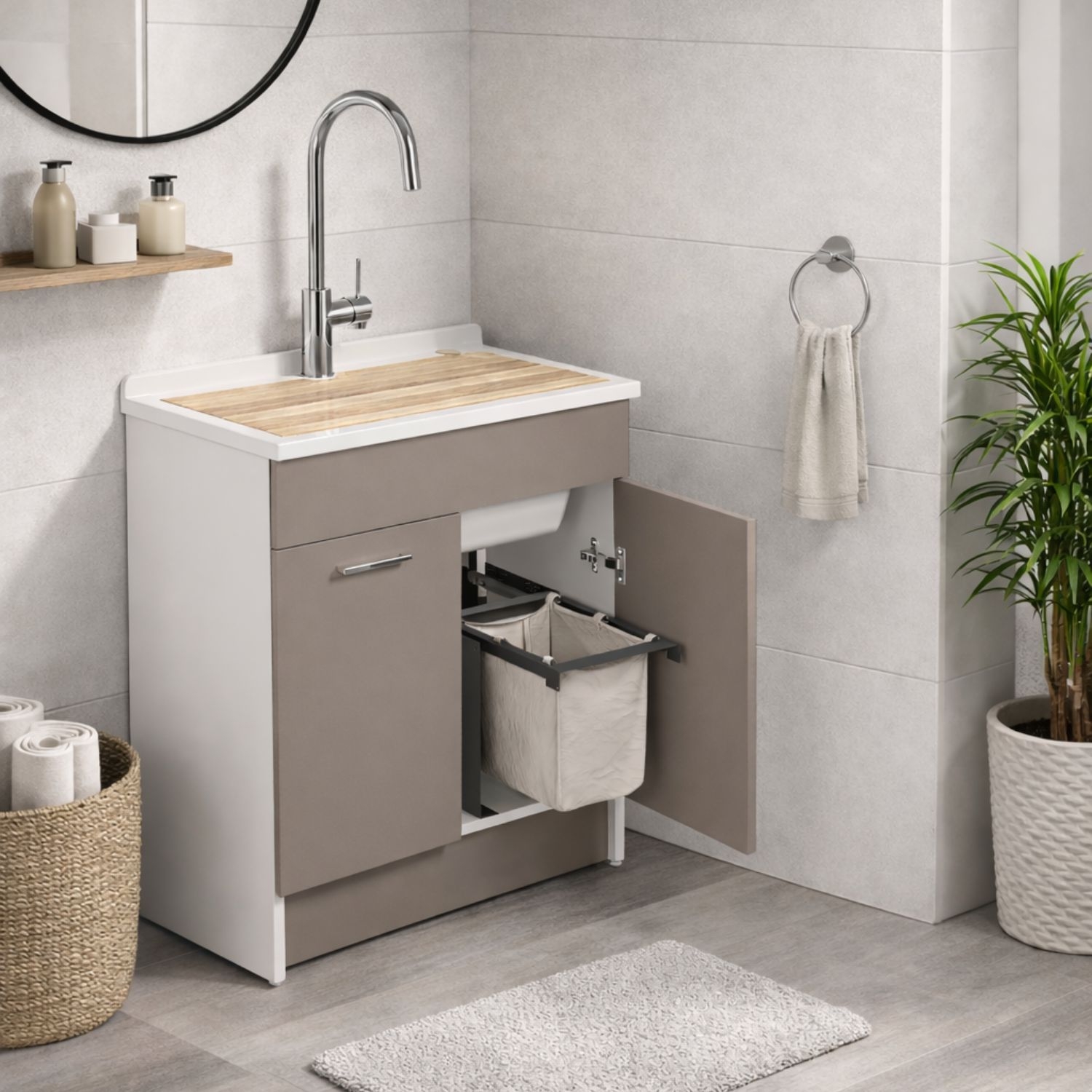 Il lavatoio Lindo Max 75x50 con cestello portabiancheria è la soluzione perfetta per chi cerca spazio, praticità e design moderno in lavanderia o bagno.