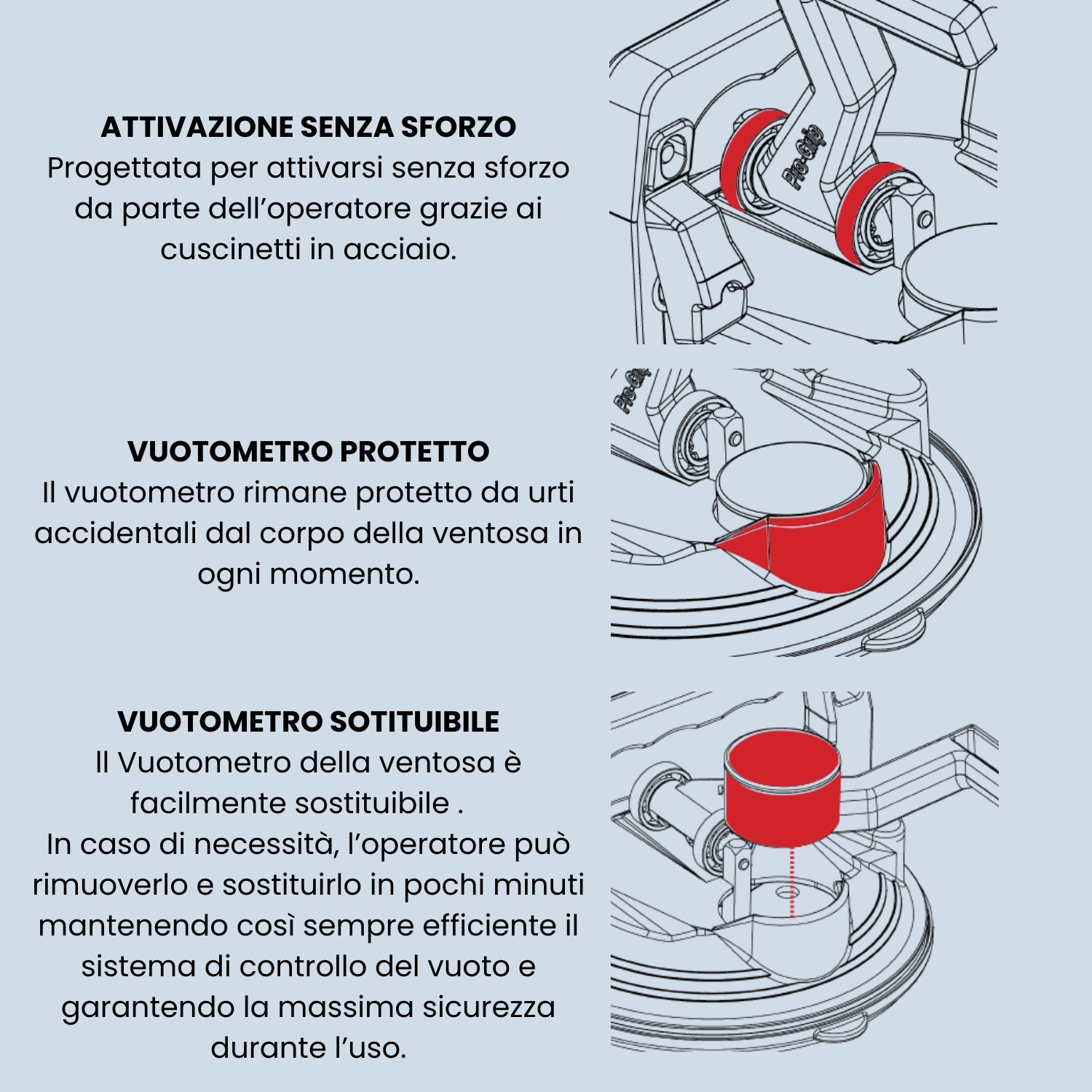 - 8 ventose a leva Pro-Grip Ø 160mm con vuotometro e protezione