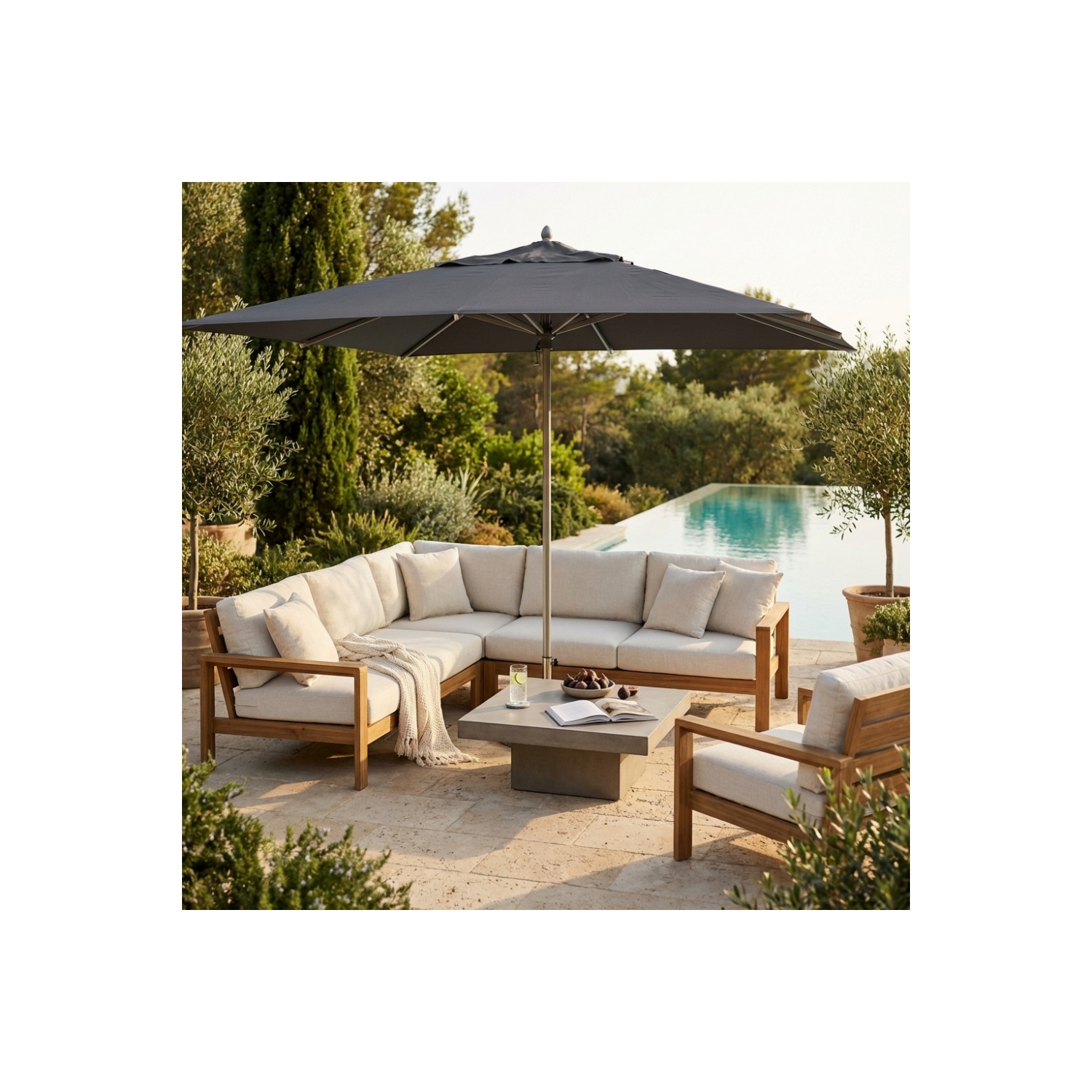 Ombrellone con palo centrale 3x4 mt color grigio scuro - Cristal