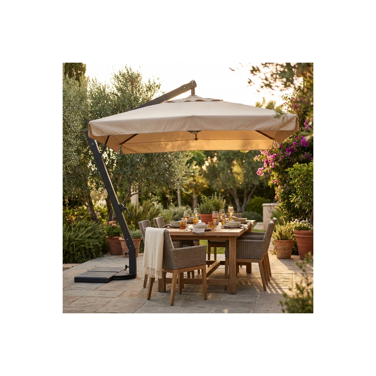 Ombrellone da giardino 3x3 mt con palo laterale Beige/nero - Venere